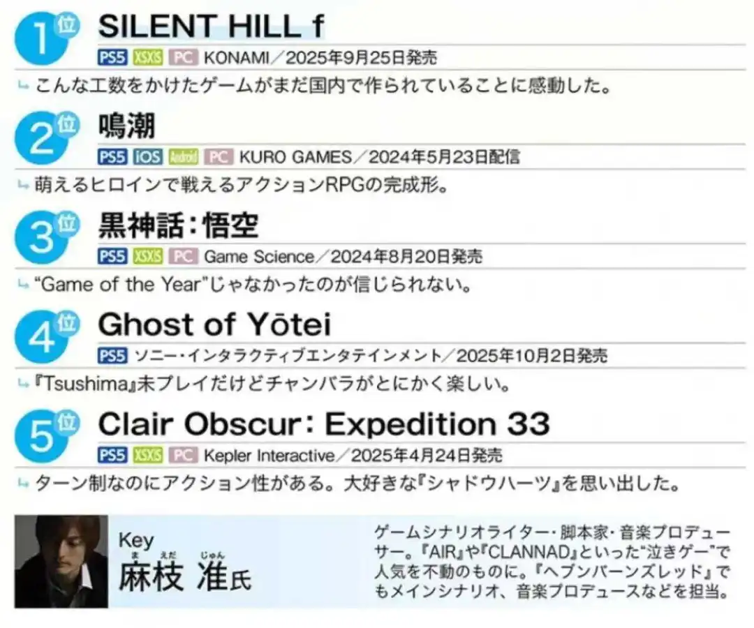 前段时间,日本Fami通公布了“超流行游戏大赏2025”的评选结果。