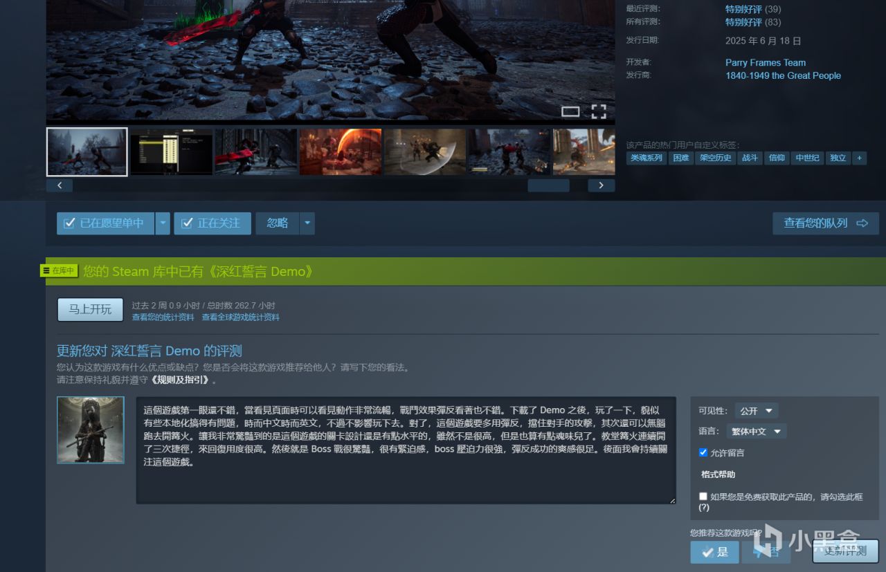steam demo有独立页面,游戏免费一样可以发评测!