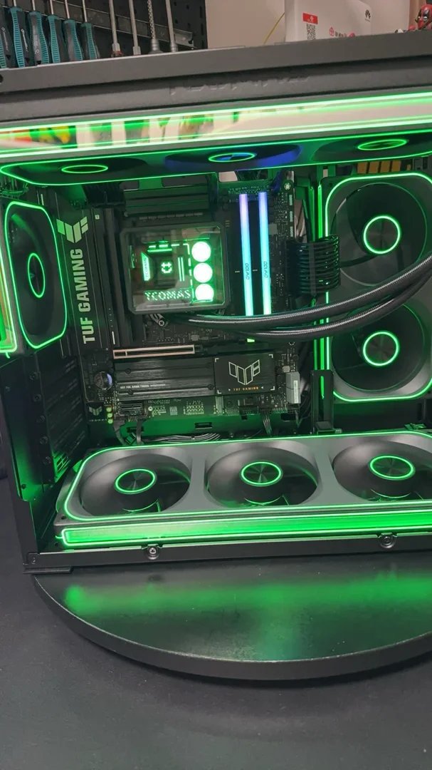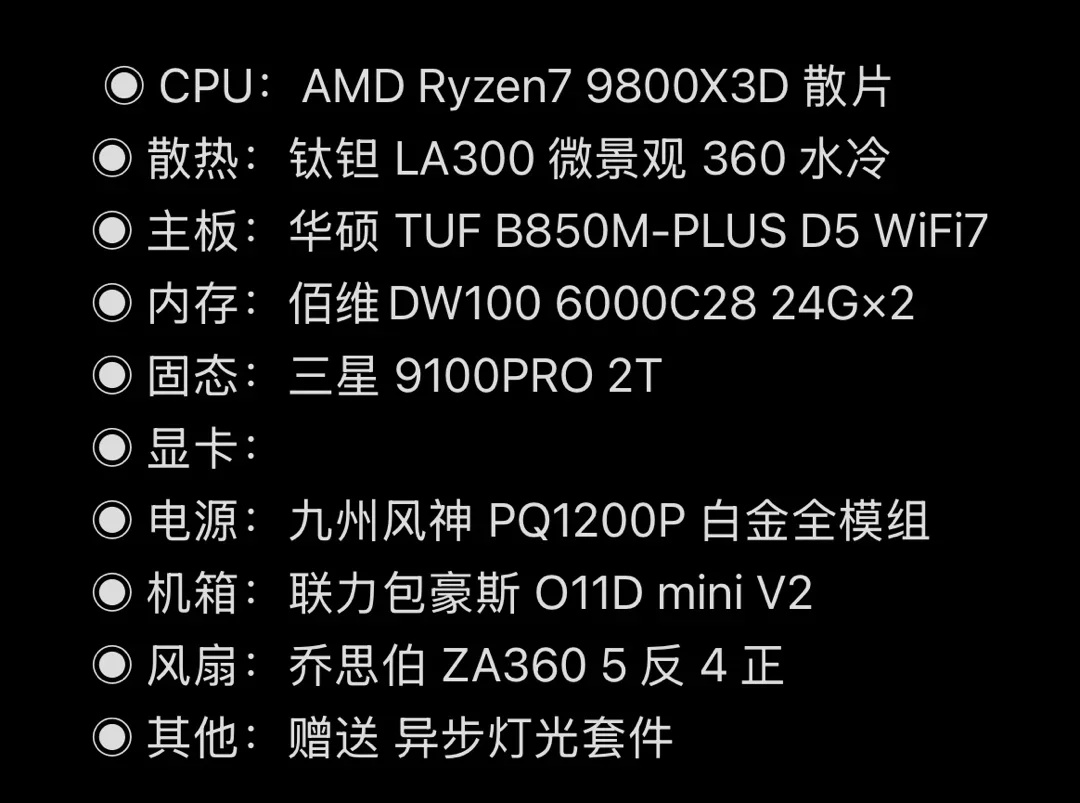 盒友打算配一套无卡刀把海景房,自备了一张3080Ti显卡,出了一套配置后,更换了一下固态硬盘,直接就爽快的定下了。之前配置默认的是冰魔方360水冷,后续又免费给他升级了LA300微景观,后续配合灯光套件,丝滑切换。盒友自备的3080TI显卡,给他预留了3根8PIN供电线,也预留了12V-2×6的显卡供电线,方便日后更新新显卡使用。
