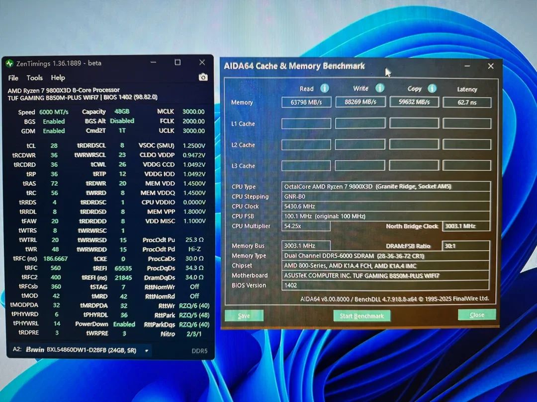 内存宽参,无内存风扇,这套内存延迟62.7ns都差不多,稳定够用,不蓝屏不死机不闪退,是保持愉悦心态的前提。