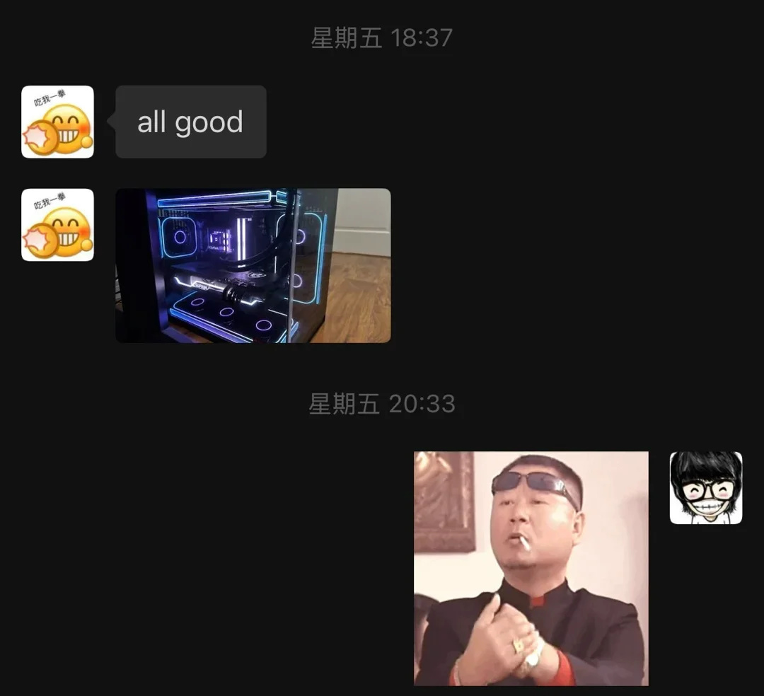 拍摄增加固态硬盘的视频,安装显卡的视频,显卡供电线插法视频,灯效软件设置的视频,全部发给盒友,盒友动手能力也很好,全都搞定了。