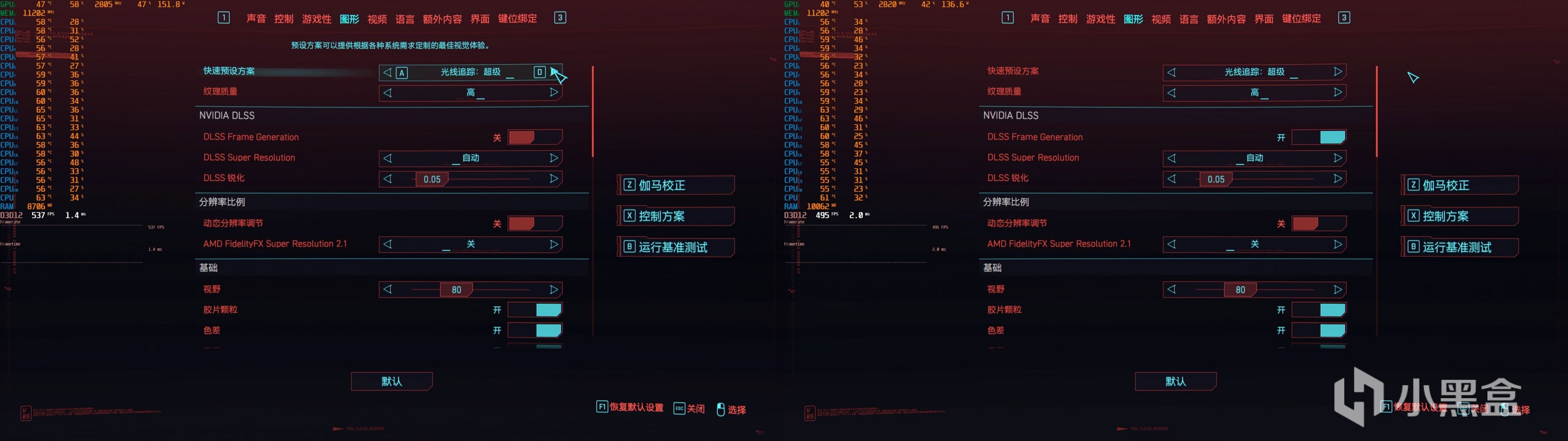 全新的英偉達DLSS 3.0的技術,對於遊戲幀數的提升還是非常有效且明顯的,並且絲毫不會影響遊戲畫面的質量,開啓和關閉相關的設置選項,遊戲幀數提升超級明顯,遊戲的幀延遲下降也超級明顯,能非常清晰的感受到遊戲畫面變的更加的流暢。