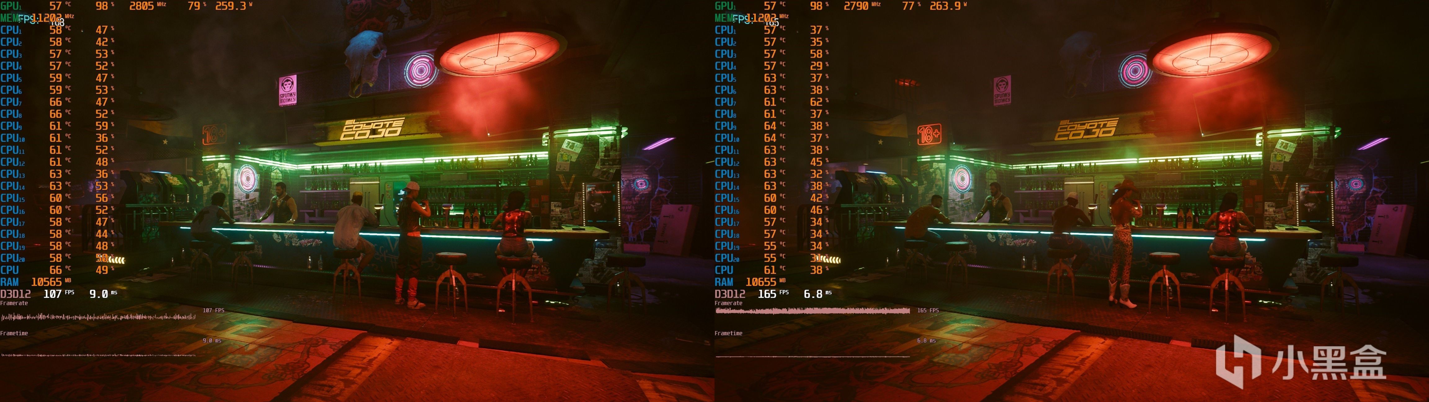 ▼實際對比遊戲畫面,酒吧場景,開啓和關閉DLSS Frame Generation選項,蘑菇並沒有看到遊戲畫面有什麼不同。