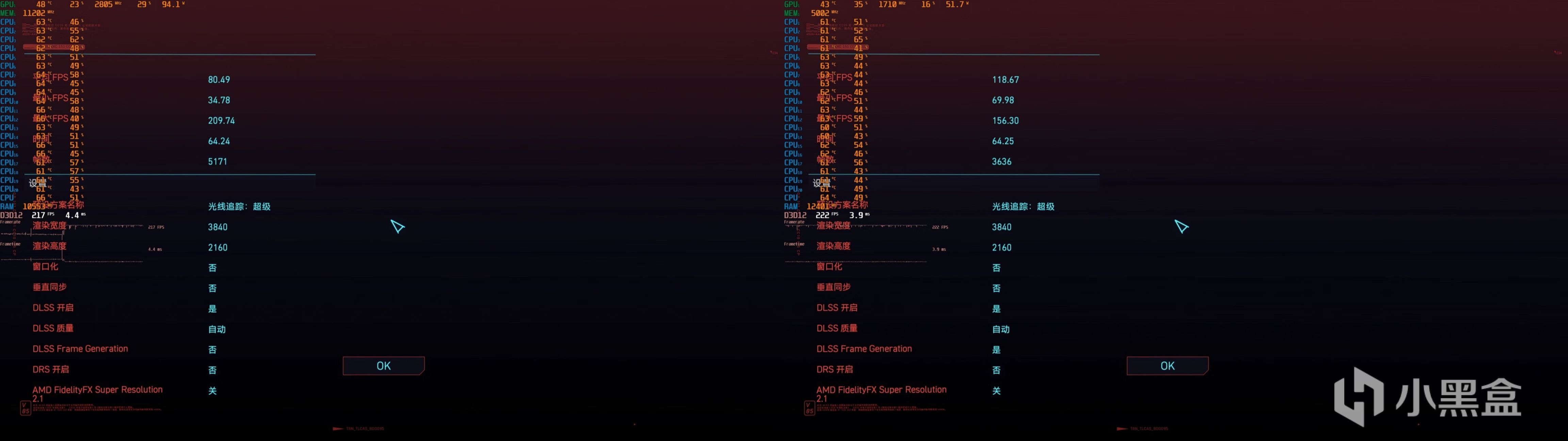 ▼在更高的4K分辨率下,遊戲幀數依然有非常明顯的提升,從之前的平均80.49幀,提高到平均117.58幀,提升46%,幀數提升效果也十分顯著。