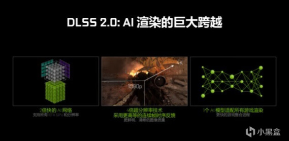 面對這種情況,英偉達又推出了DLSS技術。DLSS技術就是利用顯卡核心中的一個專精於AI深度學習的核心Tensor Core,讓顯卡核心先渲染一個低分辨率的畫面,接着通過AI深度學習,根據經驗,補出高分辨率的畫面內容,從而降低CUDA流處理器渲染遊戲畫面的壓力,從而提高遊戲的幀數。