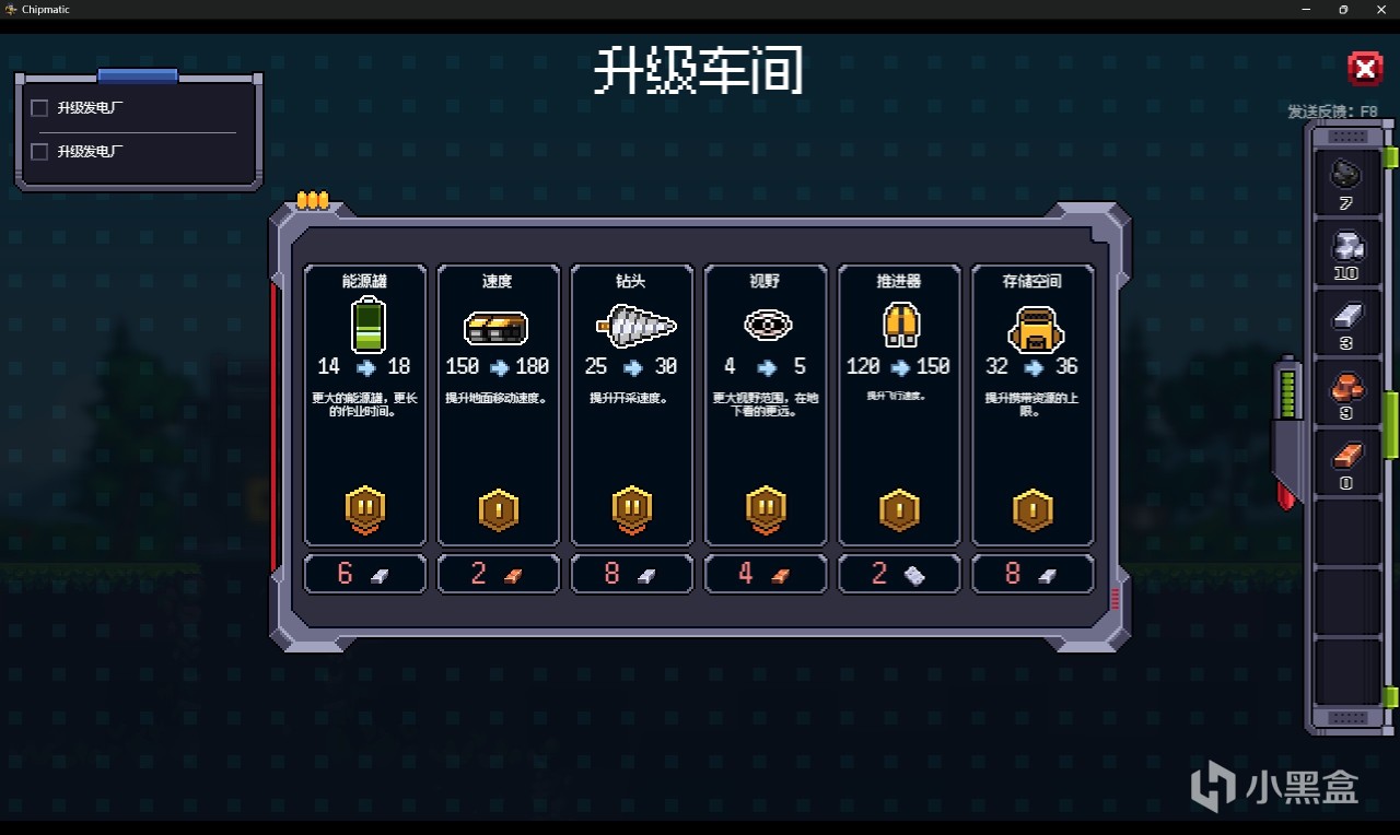 【升级】:用你工厂生产出的零件,改造你自己。升级钻头、扩大背包、强化引擎……每一次提升都带来实实在在的改变:之前挖不动的岩层现在轻松凿穿,原来需要跑好几趟的矿脉现在一次搞定。