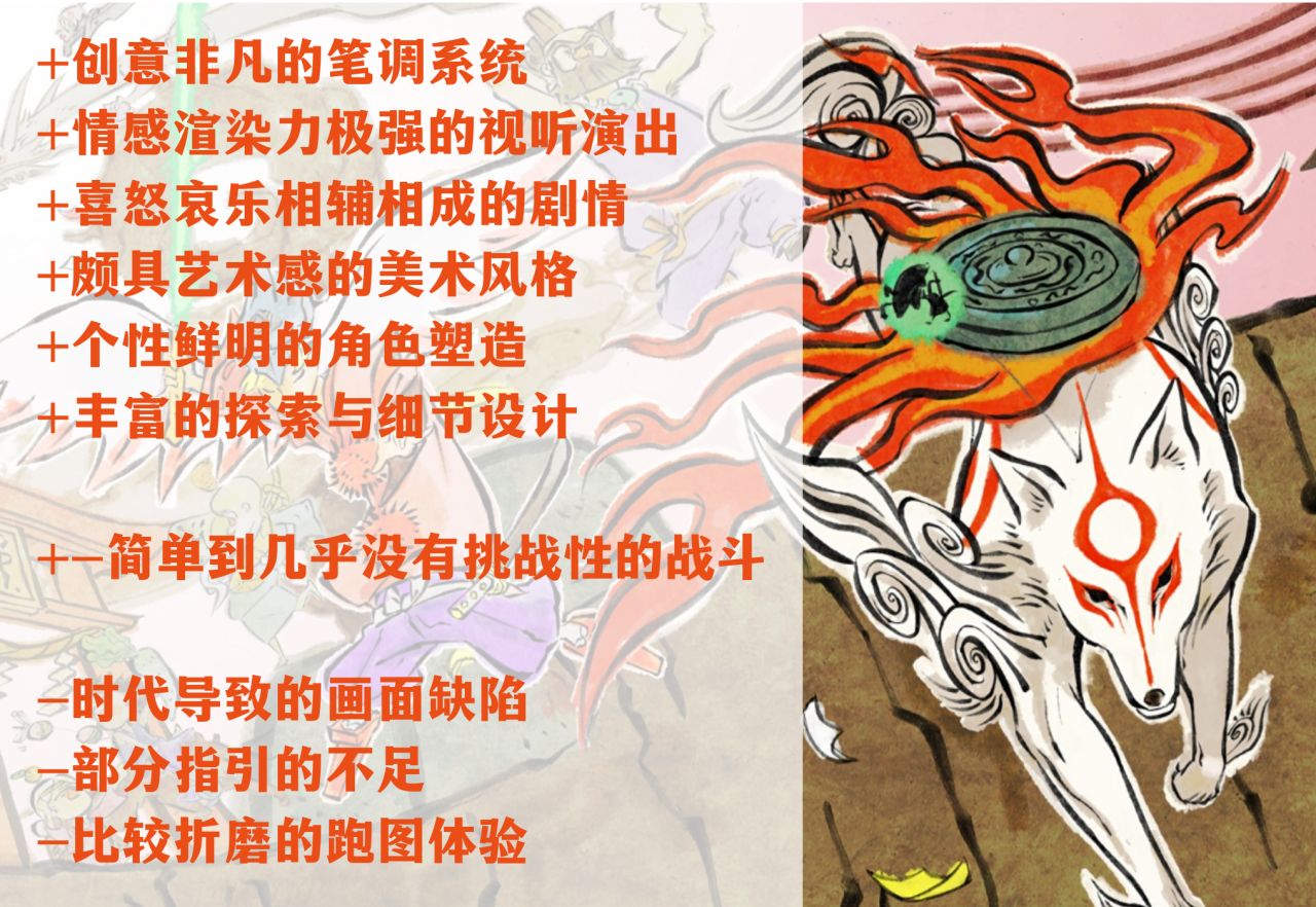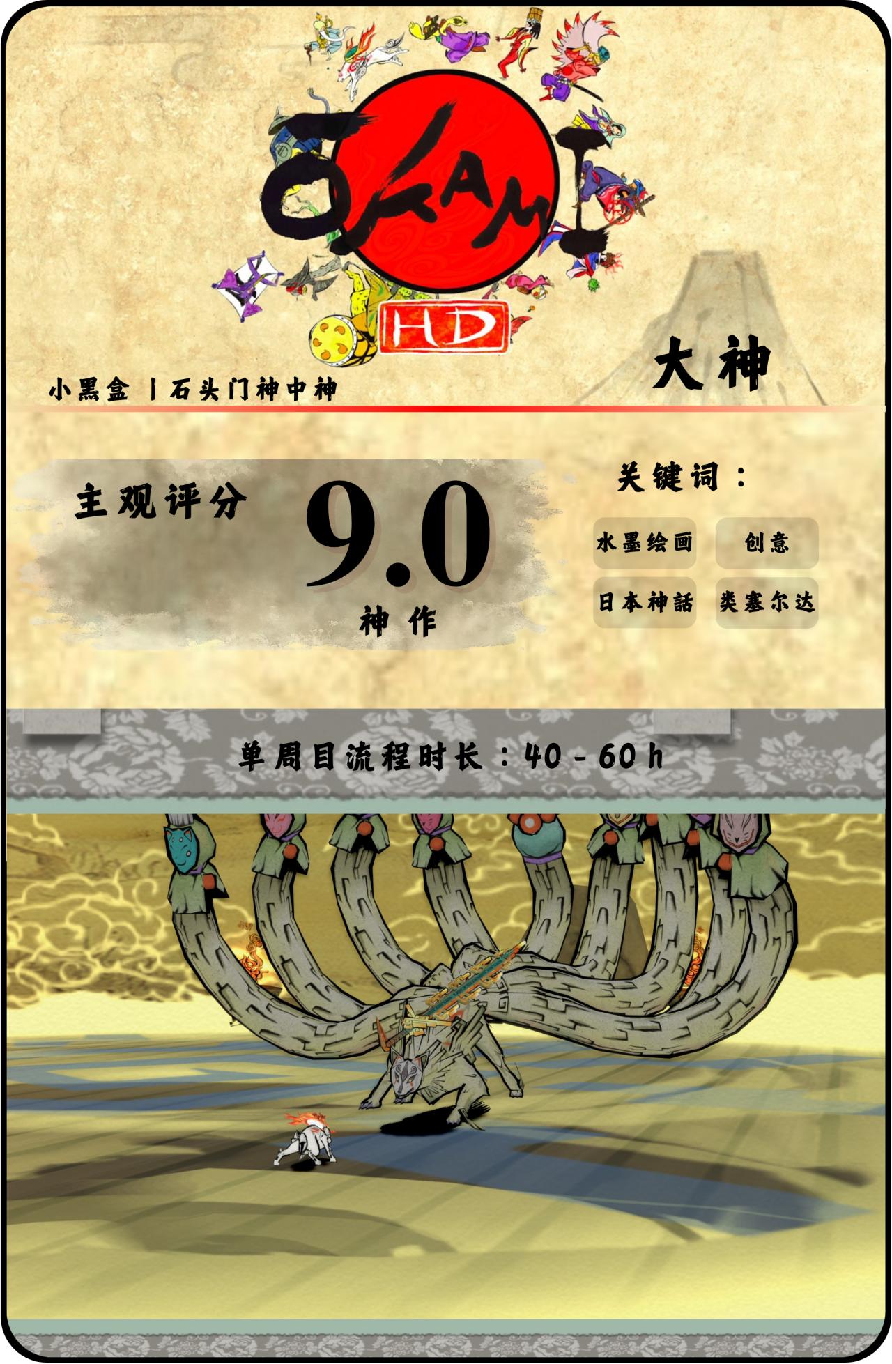 画面方面,虽然游戏的画面已因时代更迭而略显褪色,但其浮世绘水墨画风与古神话题材的巧妙融合,不仅弥补了技术上的局限,也凭借诸多别出心裁的演出,成功维持住了整体的视觉观感与沉浸感。