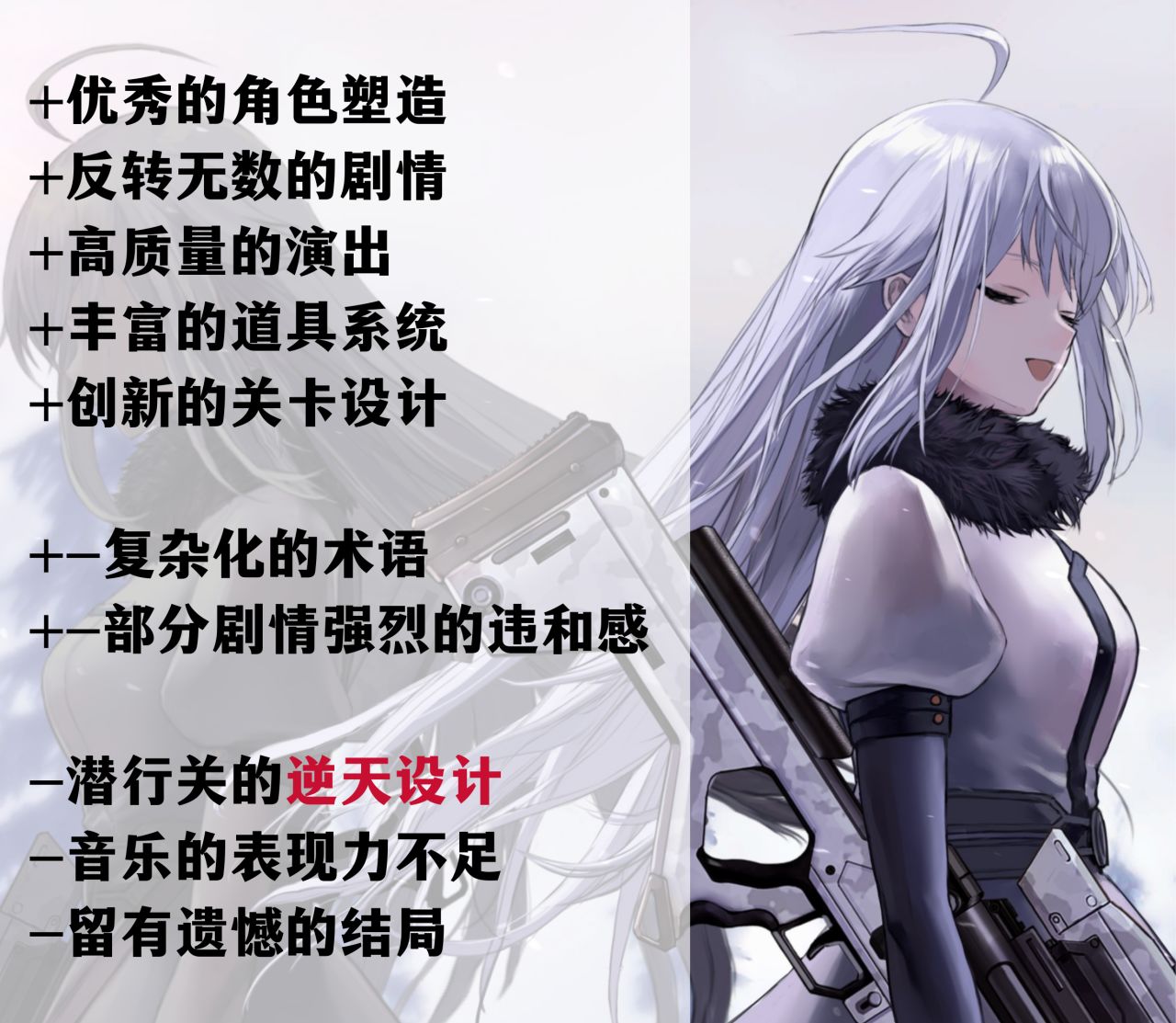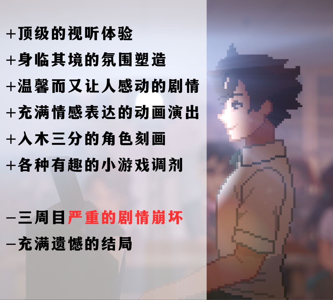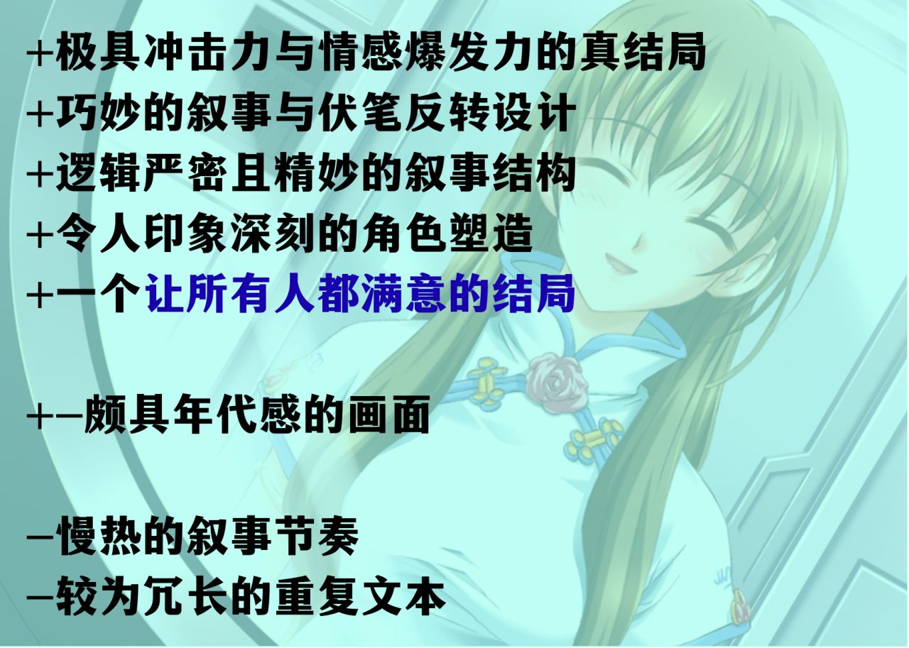 本系列也存在一些缺点,比如在打了补丁后个别桥段的处理令人不适,系列结尾的演出也略显不足。但这些都不足以动摇它的整体高度。