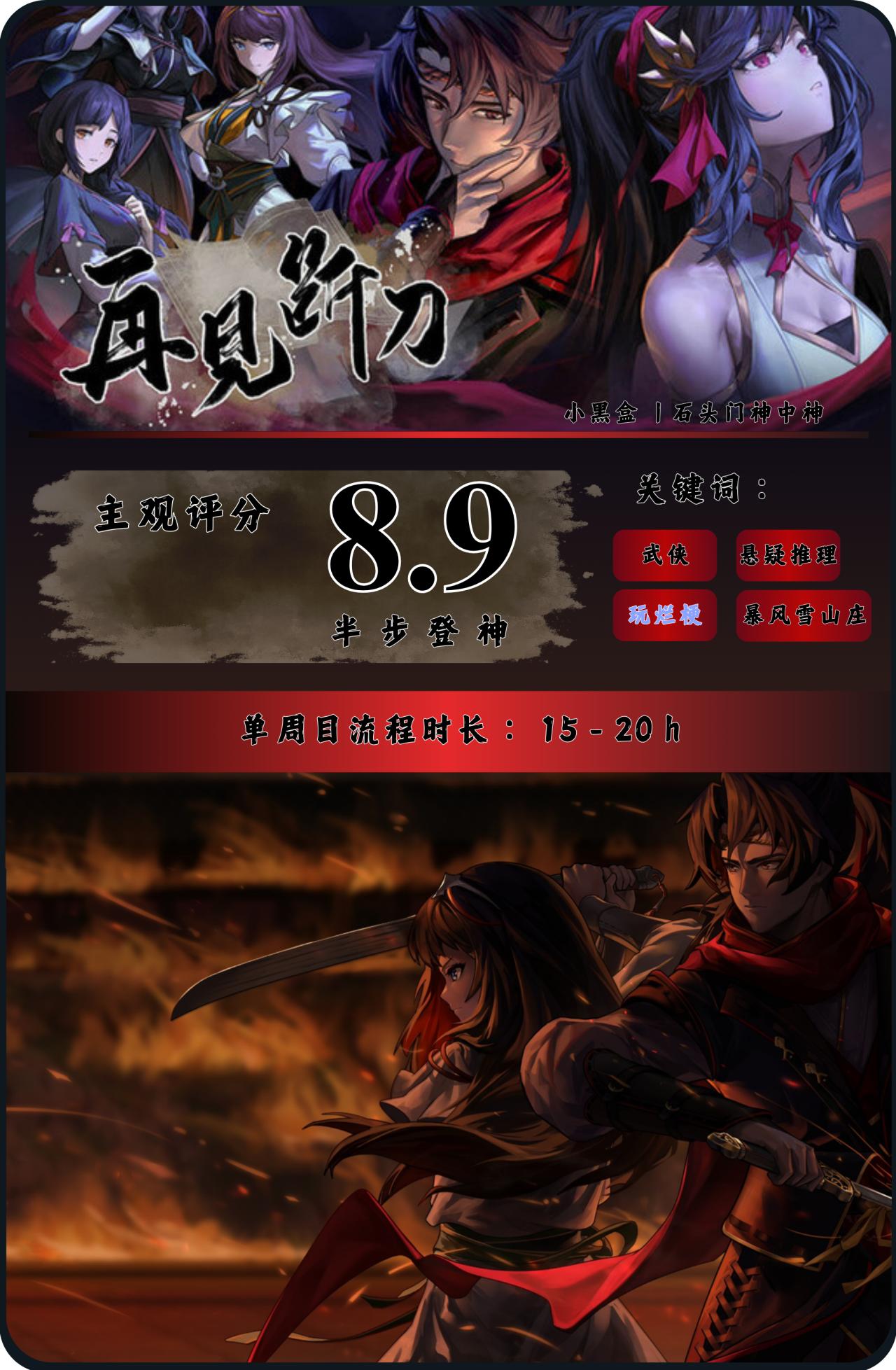 虽然它最后的收尾略微有点突兀(埋了个大伏笔),但这并不影响我对本作剧情的高评价。因为它已经完完整整的讲完了一场关于生与死、情与义的断刀之旅