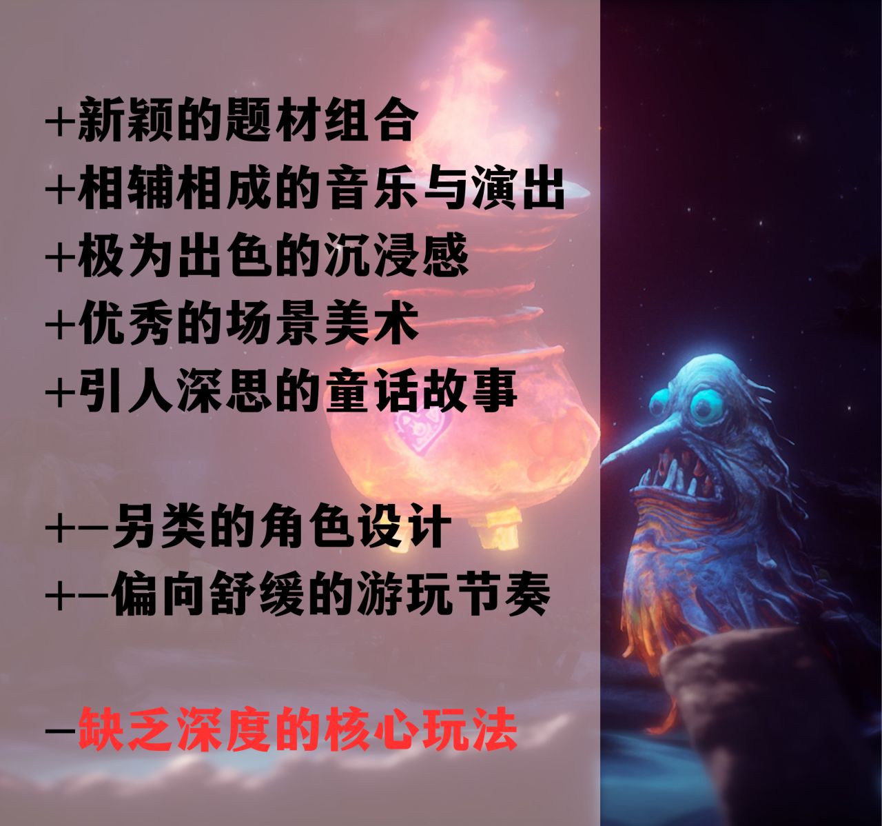 虽然目前只推出了一章,但无论是其新颖的世界观、密集的演出、如绘本般的美术风格,还是无与伦比的想象力与扎实的文本表现。都让人更加期待它在未来的表现。