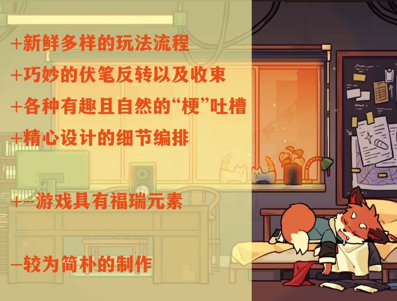 不过夸归夸,本作的故事说白了还是主打一个乐子,真要细究是能够找到不少漏洞的,只不过对于一款1小时左右的游戏来说已经足够完整了。
