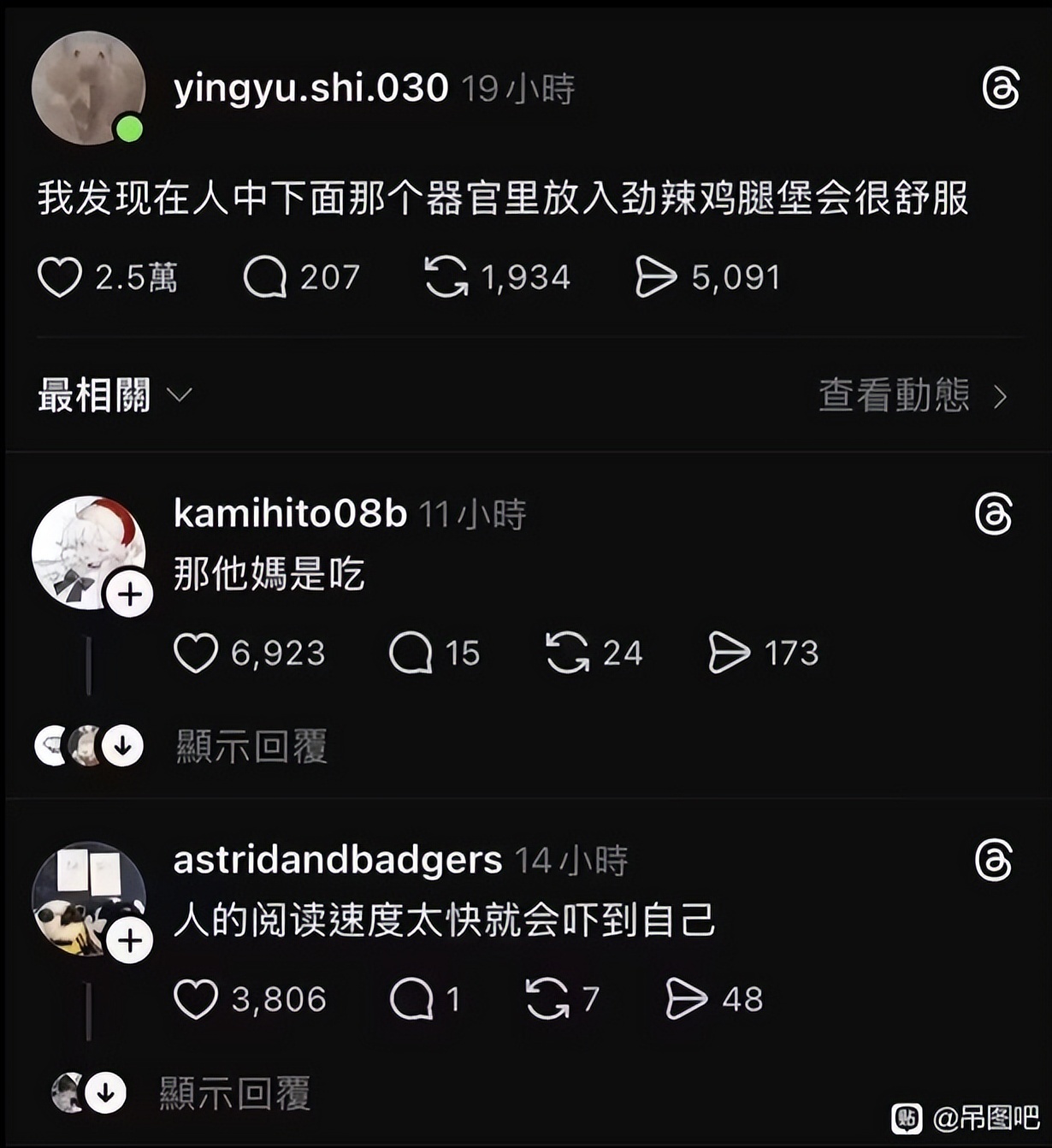 但话又说回来,抛开这些强行上的价值和思考,“jingyu.shi.030”在说出“我发现在人中下面那个器官里放入劲辣鸡腿堡会很舒服”时,肯定是没有想这么多的——有没有一种可能,往嘴巴里塞劲辣鸡腿堡,真的是一件很爽很爽的美事呢?