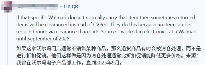 不过也有玩家泼冷水,觉得这么便宜肯定是退货的机子。这话很快被懂行的人接上,一位 2025 年 9 月前在沃尔玛电子部门干活的网友揭秘,要是门店本来就不卖这货,退回的商品会直接清仓,比员工内购价砍得还狠,就是为了快速出掉。