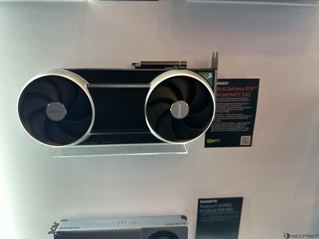 也许是5090规格确实爆表,技嘉也在本世代推出了超旗舰设计,被称为AORUS GeForce RTX 5090 INFINITY。这款显卡在设计思路上采取了极为罕见的方案,即在非公版超旗舰上采用了英伟达公版思路的分体 PCB 电路板。