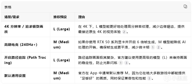 为什么不是都无脑选M?40和50系选M,相当于官方默认dlss4.5,平衡档位,20和30系因为少个加速模块,所以开M性能损耗很大,反而原来的K或者新的L更合适。