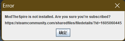 首先这个游戏的mod管理要提前计划,自带的管理器With Mod类似于泰拉瑞亚的tModLoader,玩家先作为mod上传,后被官方收编作为一个可选启动项。如果你没有订阅就启动mod则会显示如下报错,那么跟着链接或者去搜ModTheSpire即可。作者Bug Kiooeht还有另外几个mod例如StSLib和BaseMod也是很多mod的基础设施,一般在订阅时会提示你打包一起订阅。在1.3部分还会介绍作者Bug Kiooeht的个人gitcode代码站。