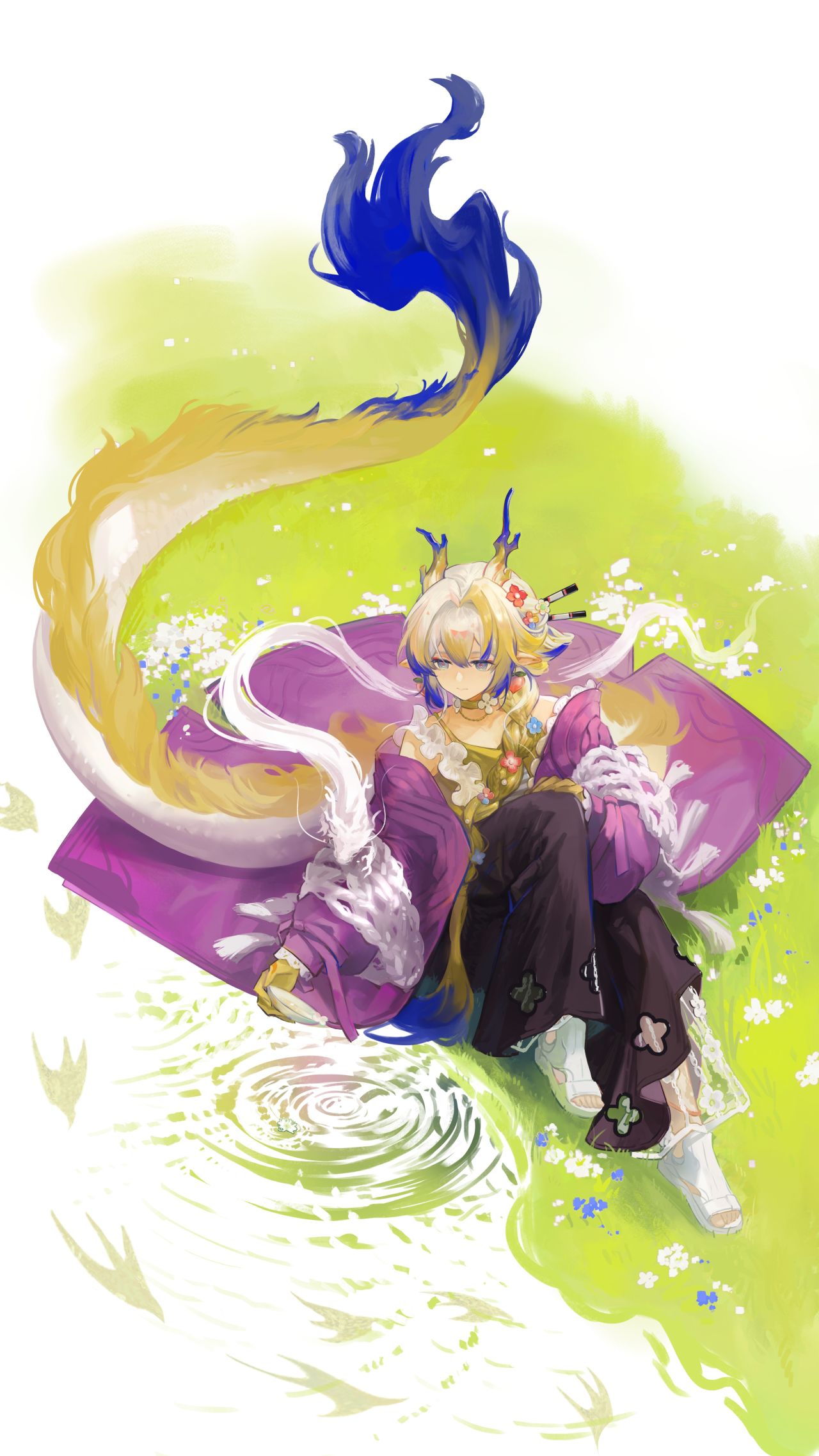 黍向田地俯下身,如云般的长尾缓缓扫过凉飕飕的田垄。刚过了育苗期,很快就要连着土地一同搬到种植地块上的绿芽,在夏日傍晚的灼灼余火中温和地闪着光。