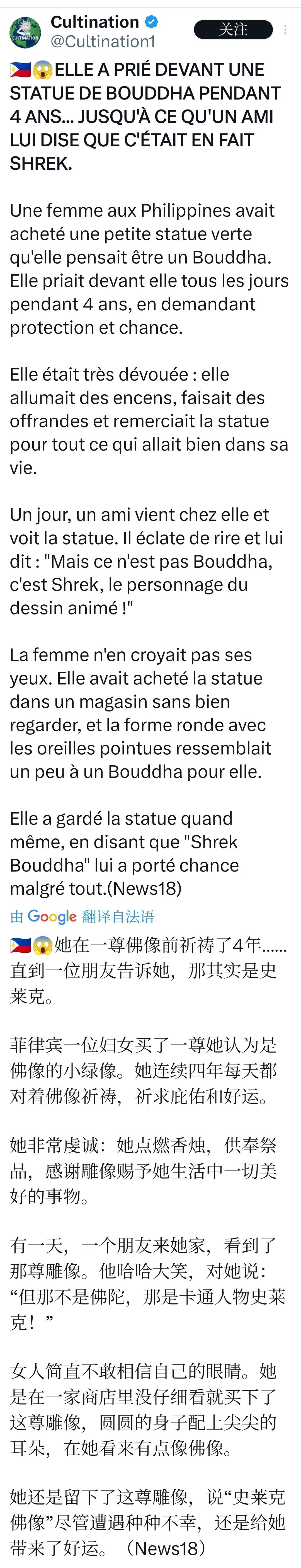 日本网友的佛教轶事:特别引人注目的是,一位日本网友分享了一个佛教中的“超玄故事”:古时候,有人误把狗的牙齿当成佛骨(舍利),诚心供奉了一辈子。结果在临终时,这颗狗牙竟然放出光芒,并引导他进入涅槃。,真诚的信仰能超越形式的局限,甚至能感召更高的力量。网友以此安慰这位女士,说她的四年虔诚或许也“感动了菩萨”,因为观音菩萨等菩萨能以各种形式显现来度化众生——谁说史瑞克不能是菩萨的化身呢?