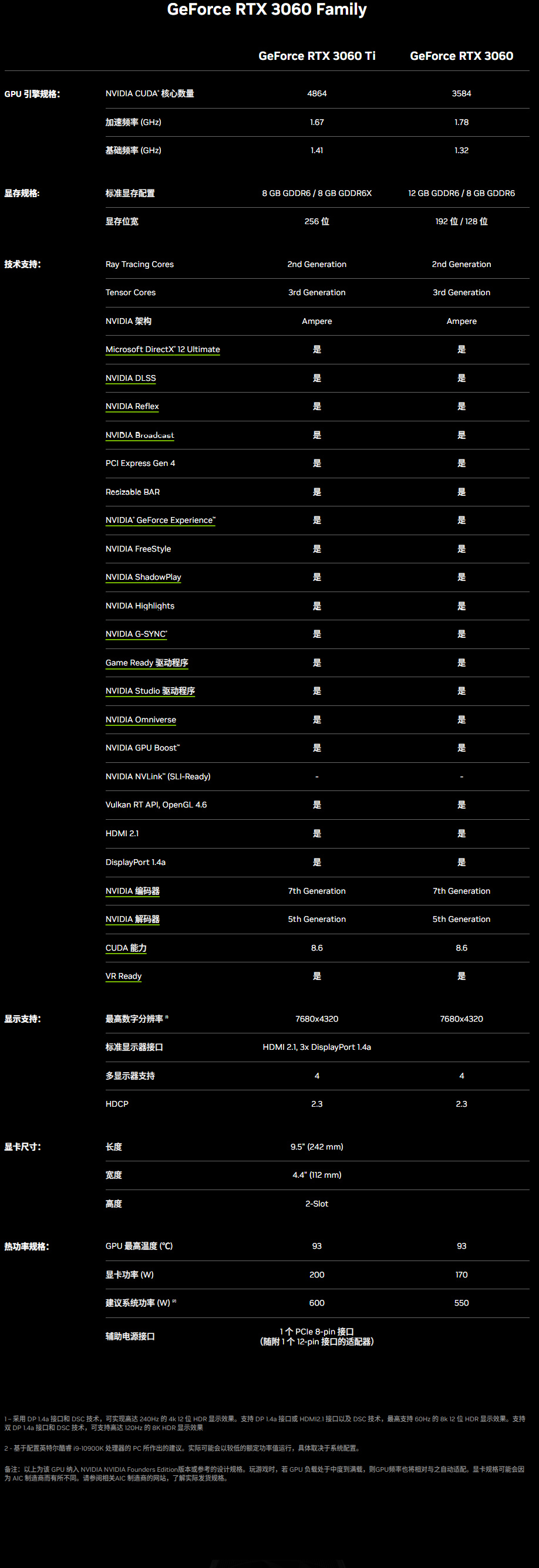 RTX 3060存在两种显存版本,硬件规格有些许差异: