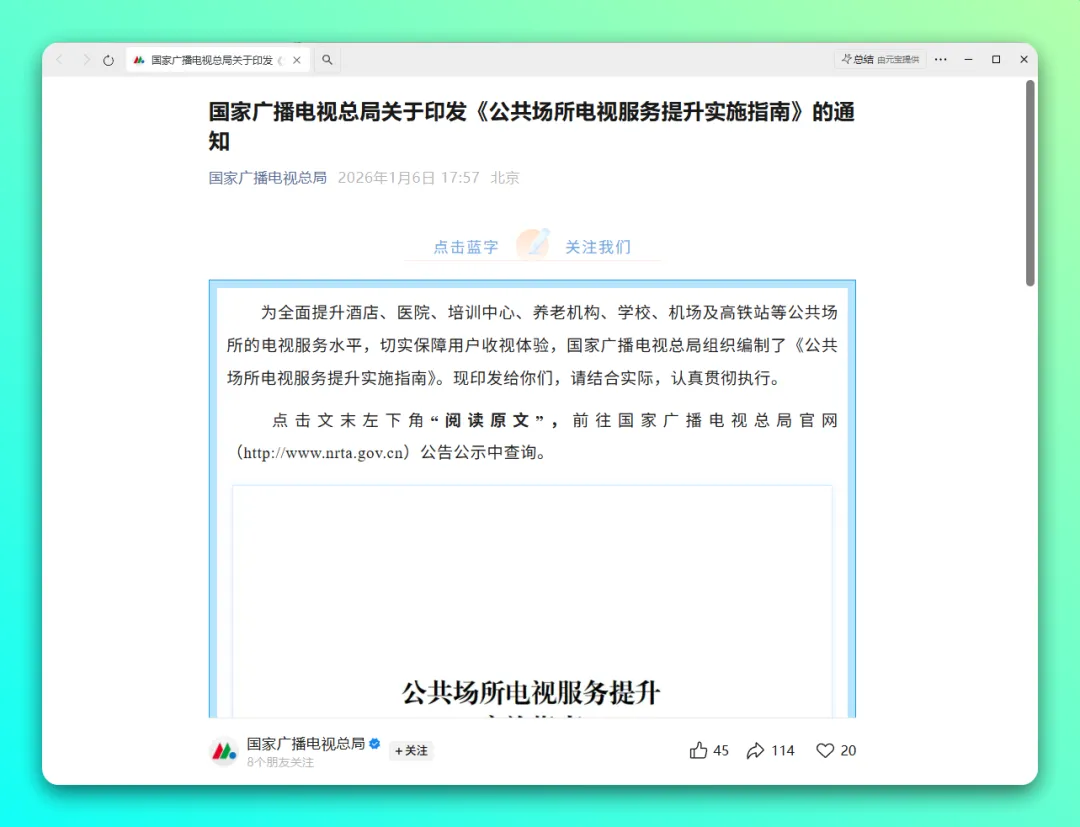 大多数国产电视机都会自带开机广告,不过现在国家广播电视总局发布《关于印发〈公共场所电视服务提升实施指南〉的通知》。要求酒店、医院等公共场所的电视终端(含电视、机顶盒等)开机全程无商业广告,同时发布了主流电视机品牌关闭开机广告的操作手册。