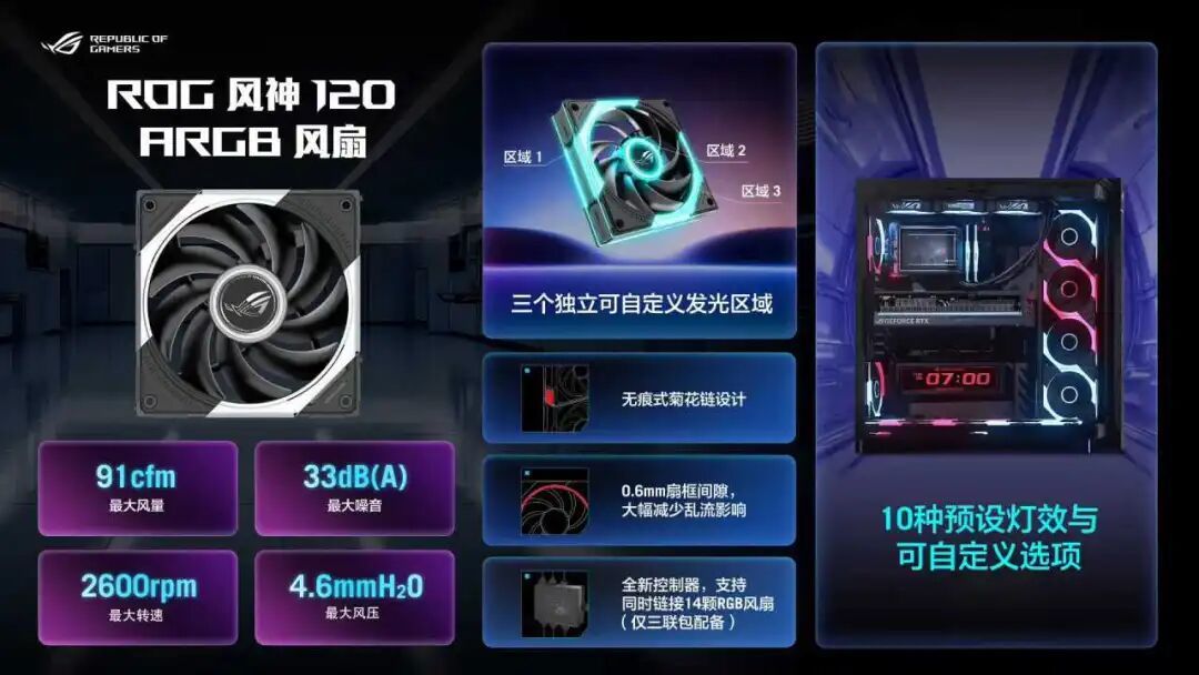 华硕表示,这些全息投影风扇的转速经过精密控制,在实际运行过程中几乎听不到明显噪音。同时,显示模块与机箱内部的风道环境完全隔离,不会对机箱内部的散热气流和散热效率造成任何影响。