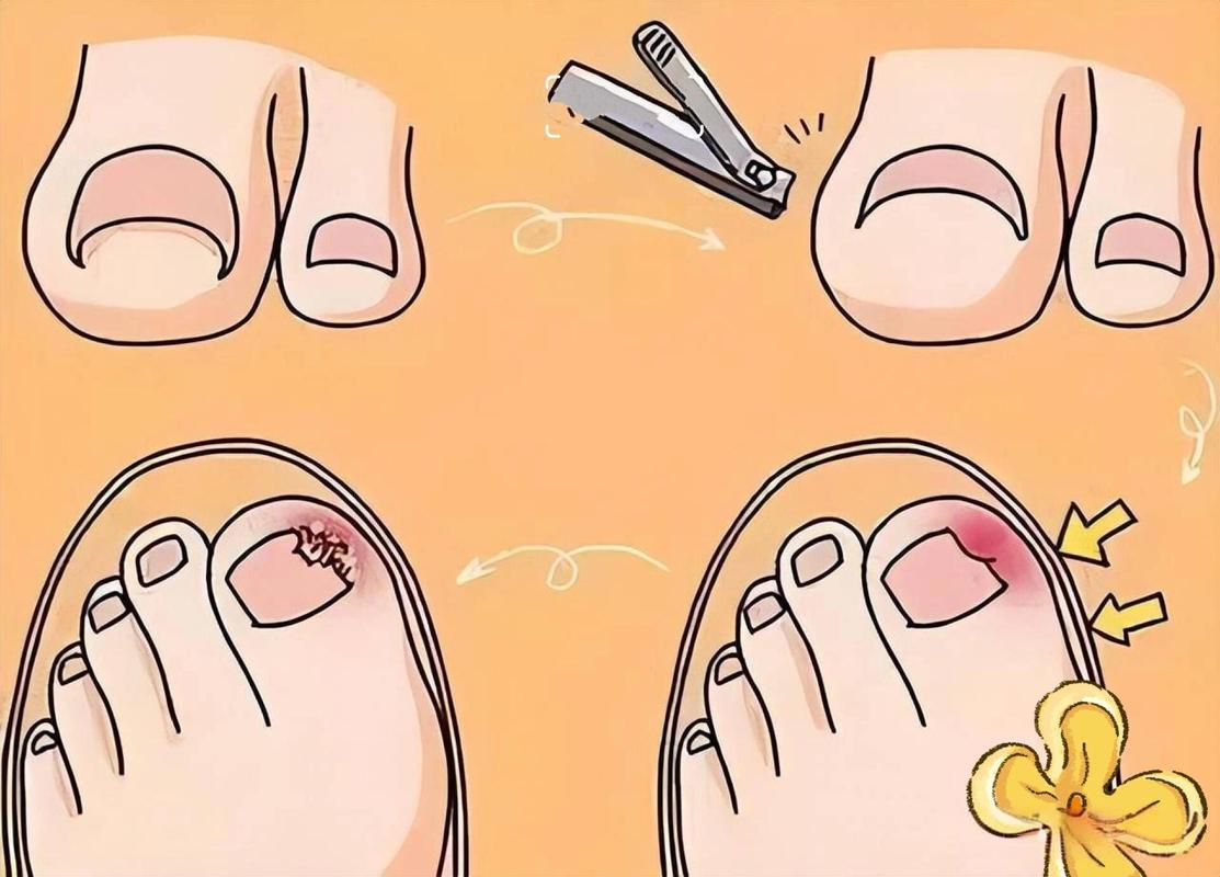 把趾甲剪得太短、特别是两侧剪得太深,会让趾甲在生长时容易“拐弯”刺进肉里。