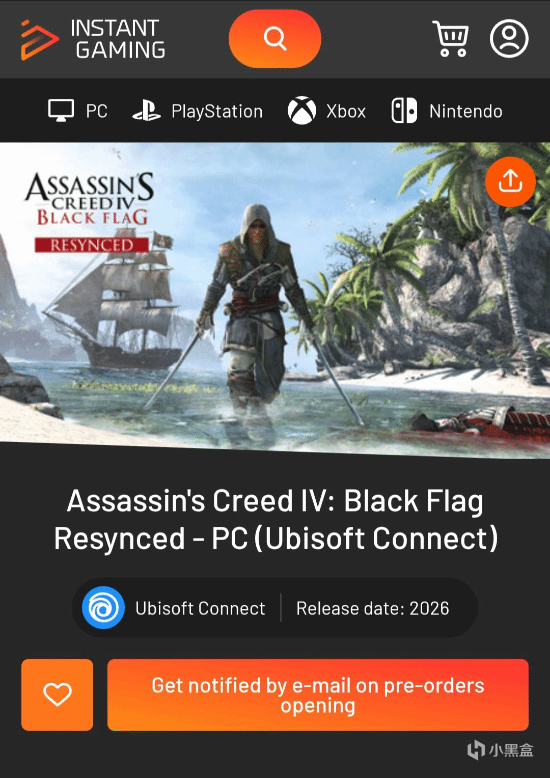 有网友陆续发现多家线上游戏零售商悄然上架《刺客信条4:黑旗》重制版PC端商品页面,引发全球玩家社群热议。页面信息显示,该作将独家登陆育碧Ubisoft Connect平台,发售时间标注为2026年,并已开通“预购开启邮件提醒”功能,不过暂未披露售价及具体配置要求。