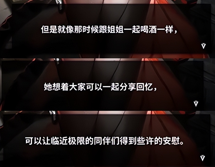红莲真的变了很多,原先僵硬严肃的性格已经变得像姐姐一样豁达摆烂想要隐居田园,总是皱眉的表情换上亲和的微笑,就连当年与姐姐初次饮酒时大叫酒苦难喝,今日却成为一名酒蒙子,总能从包里翻出来一瓶小酒,但她其实很讨厌苦的东西,只是酒过三巡,和朋友们围坐在一起畅聊回忆的时刻太暖。暖到让她暂时忘了,当年和她碰杯的人,再也不会回来了。