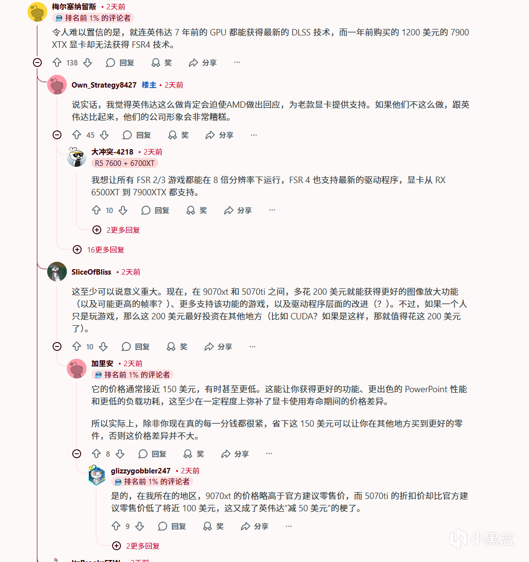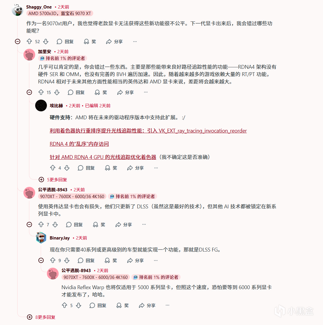 AMD 或许可以从中吸取一些经验,AMD 的 FSR 4 的 “Redstone” 仍然与 RDNA 4 架构绑定,曾经的卡皇7900xtx不知何时能吃到大饼。