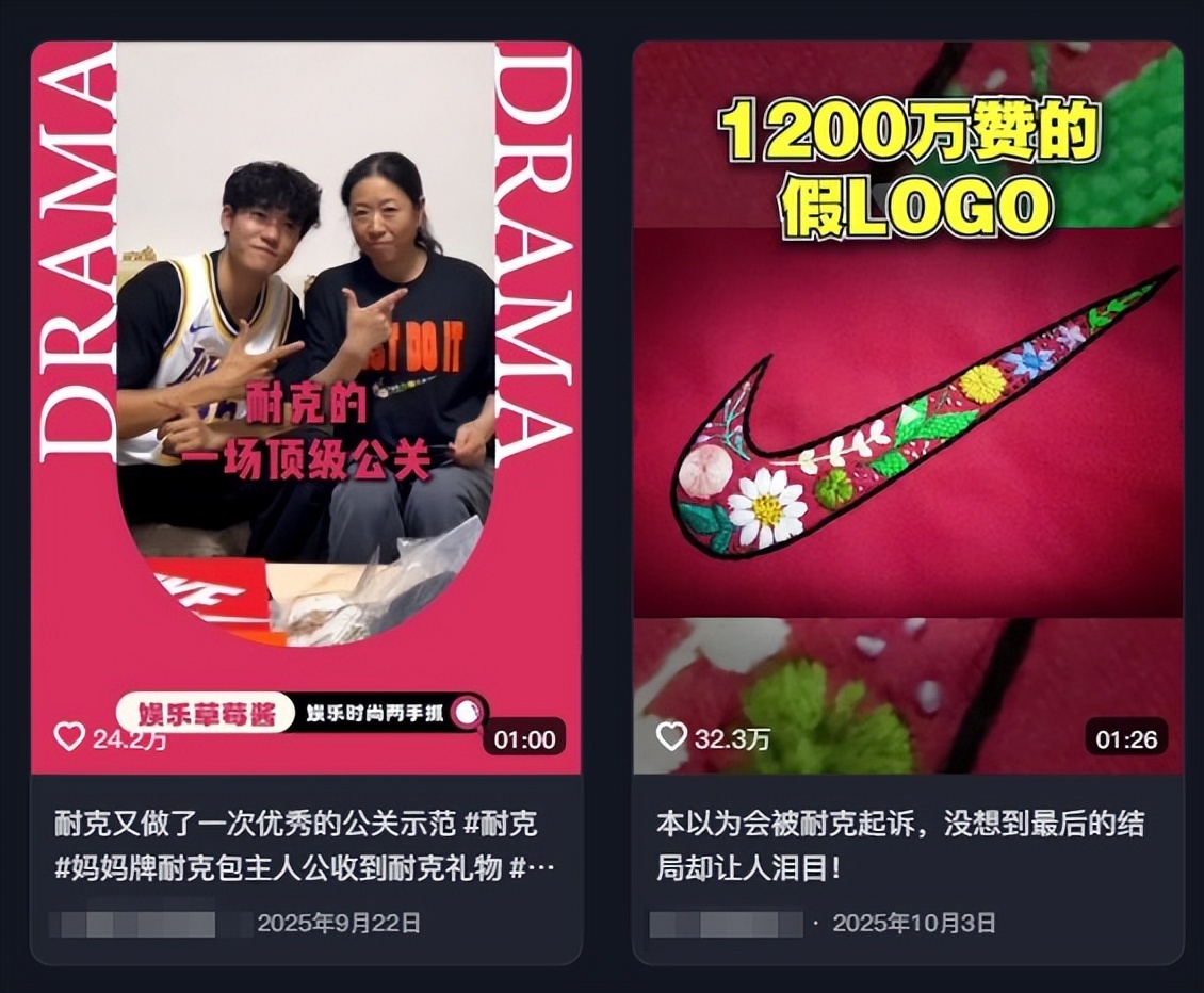 這種品牌與用戶間的互動,就是會讓網友們一邊感慨“互聯網上還是有溫情時刻的”,一邊把事件繼續傳播出去,再對着這樣做的品牌誇上幾句。類似的事情並不少見,就比如前幾個月,一位博主在網上展示母親縫製的耐克LOGO書包,在故事廣泛傳播後,那位博主便收到了來自耐克官方的贈禮,讓不少人看到了品牌和個人之間的善意交流,會帶來怎樣的收益。