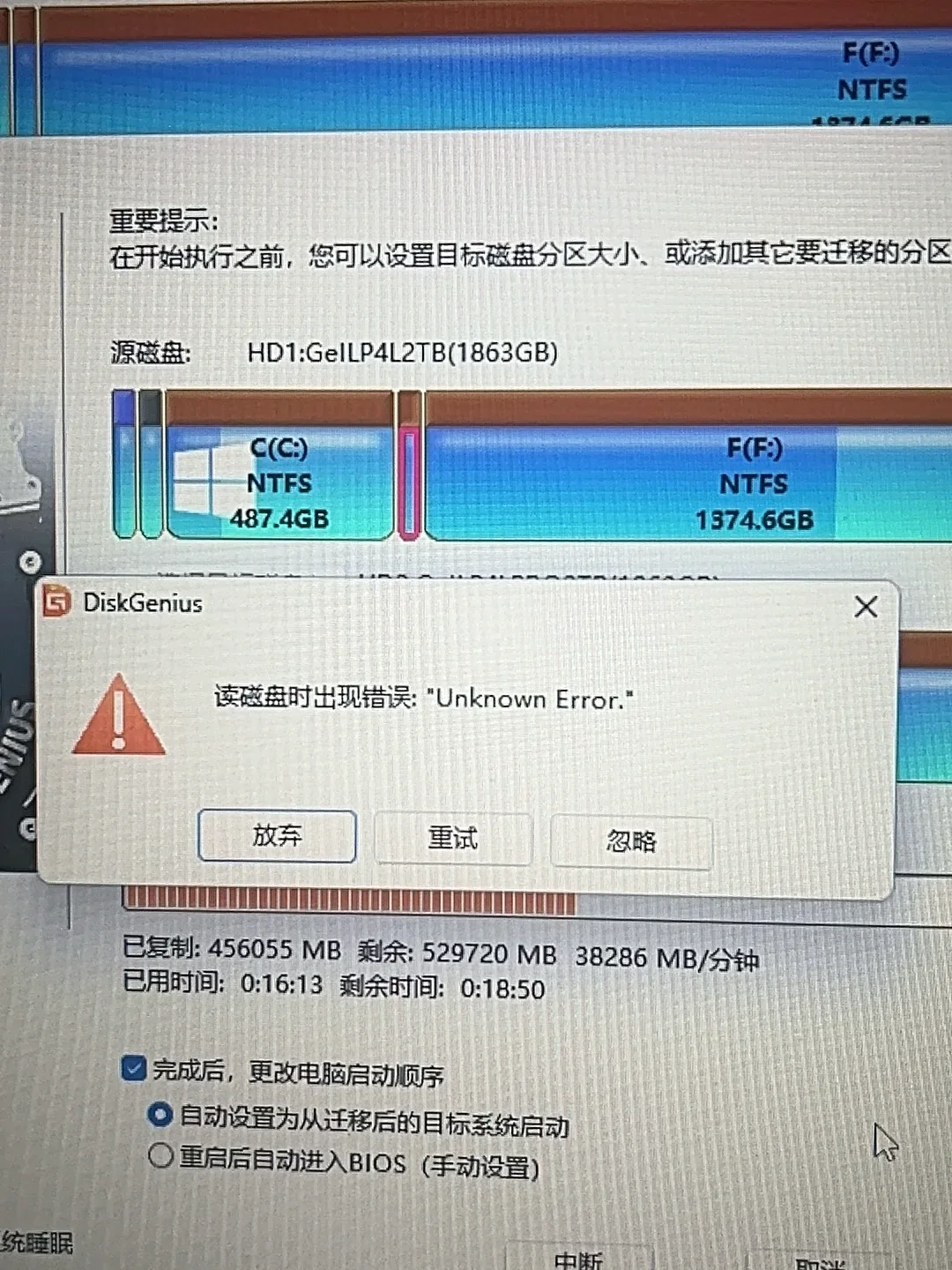 我昨天尝试转移系统文件直接报错,0e飙升,转移过程中频繁报错,文件丢失