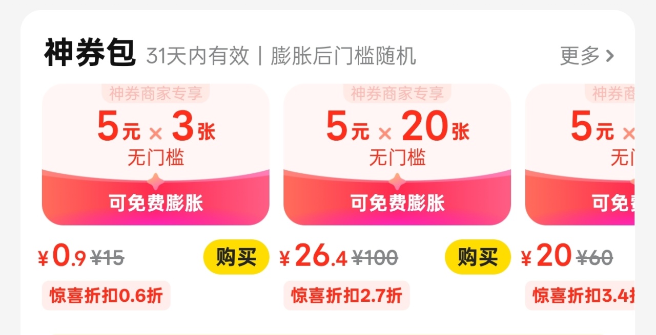 可以开始膨胀了,点开我的–顶部有个免费膨胀没有神券可以膨胀的话,下拉看看有没有折扣券包,几毛钱可以买,如果没有美团搜1991200,应该有个1块钱买三张券的也可以