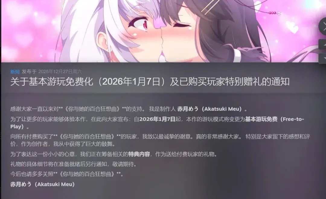 为了让更多的玩家能够体验本作,在此向大家宣布:自2026年1月7日起,本作的游玩模式将变更为基本游玩免费(Free-to-Play)。