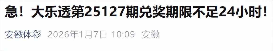 早在1月7日上午,安徽体彩中心就已发布提醒公告,表明该542万元大奖的兑奖期限仅剩不足24小时,这一消息随即引发社会公众的广泛关注与讨论。
