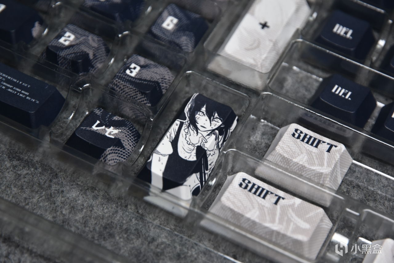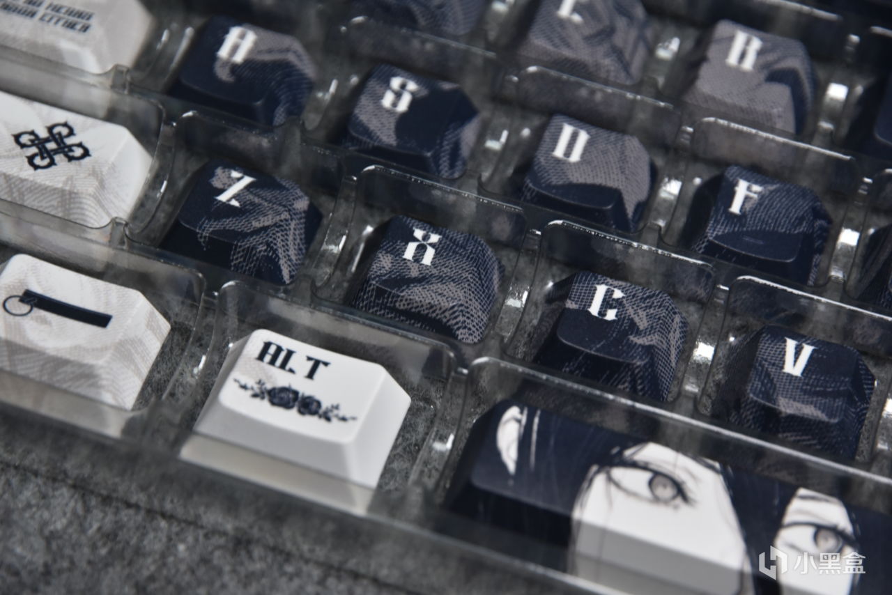 键帽中的人物都印在单个按键上,相比那种拆分到多个按键再拼接成图的设计,看上去会更加美观。