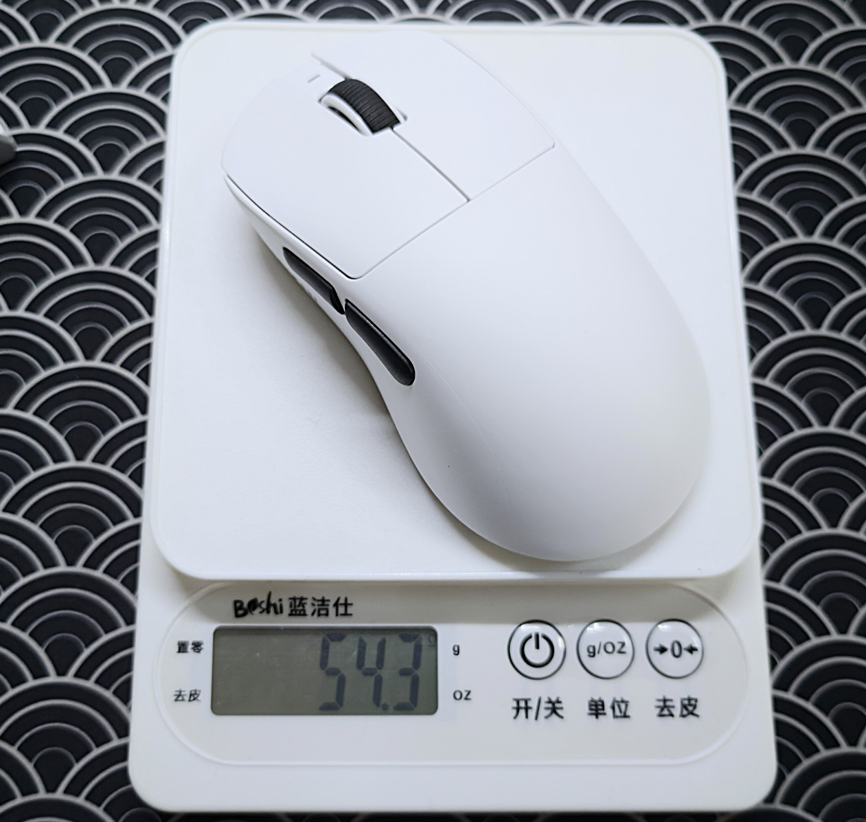 54g的重量算正常水平,S1作为非对称的人体工学鼠。它的背部隆起,适中偏高一点点,对于抓握和指握非常友好。