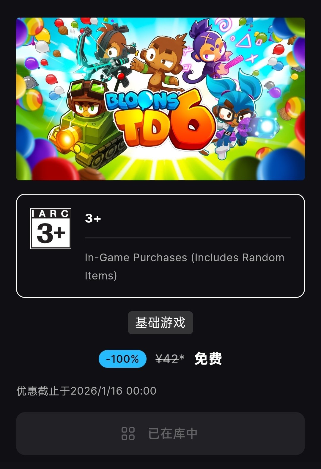 小伙伴们大家好呀,epic本周限时免费领取的游戏是原价42的气球塔防6
