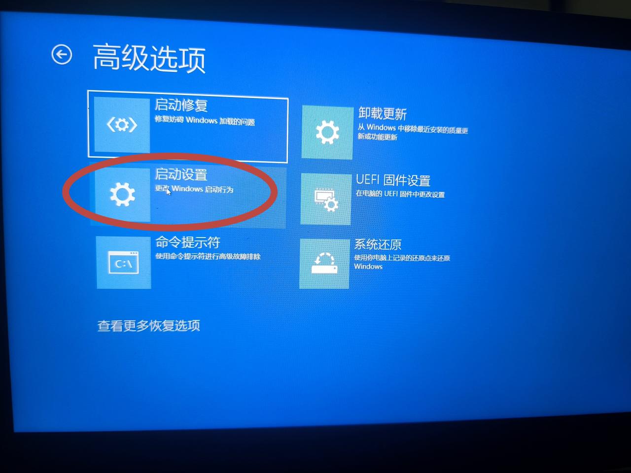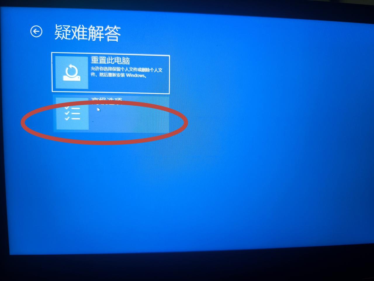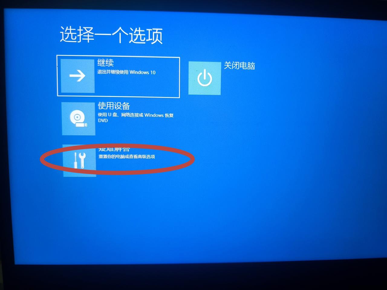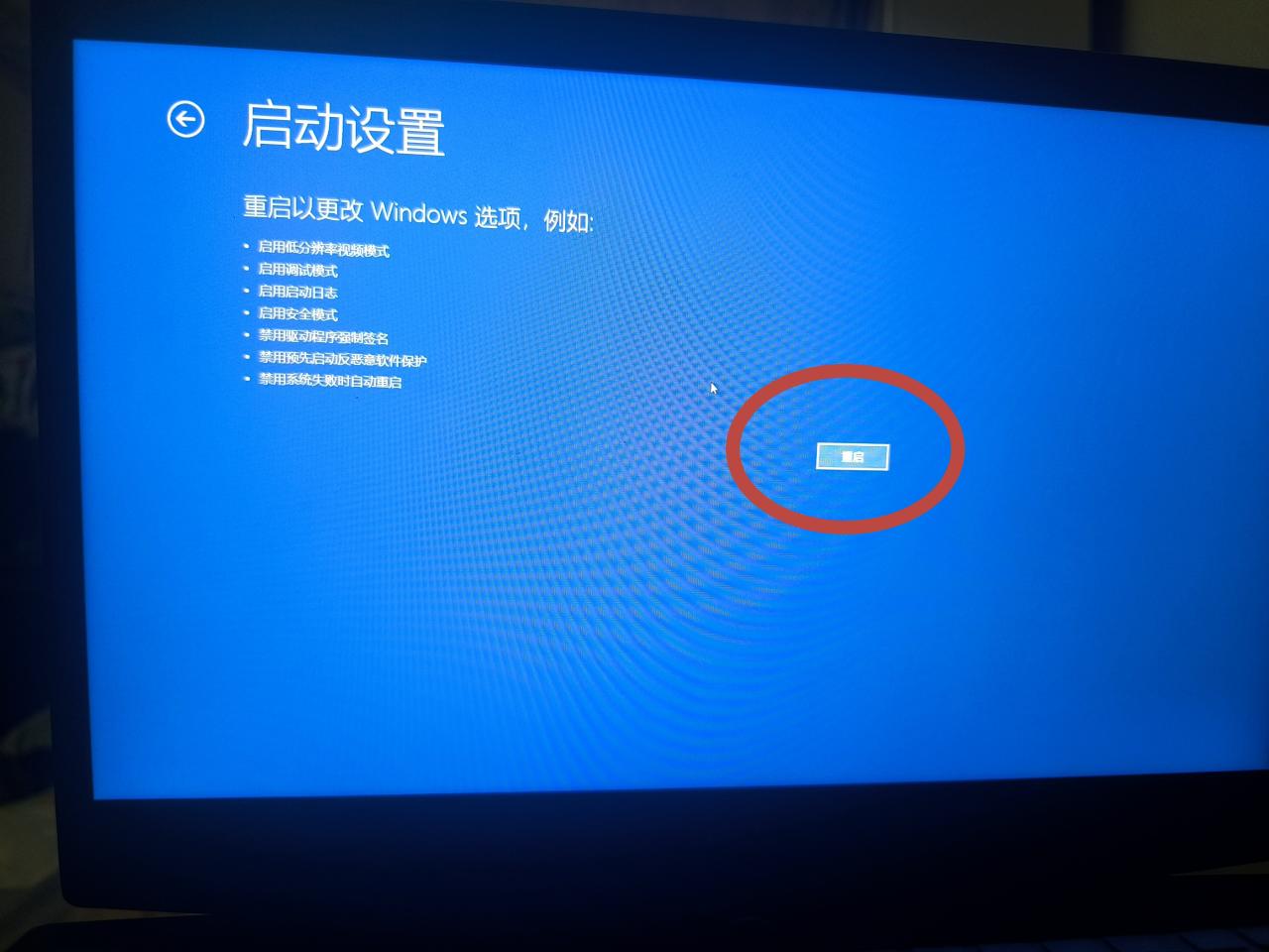 键盘上按住左shift,开始菜单中重启