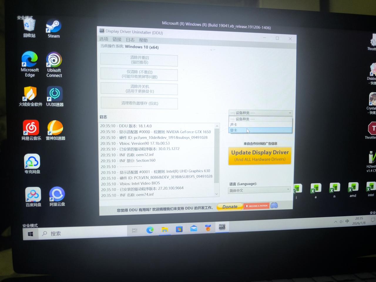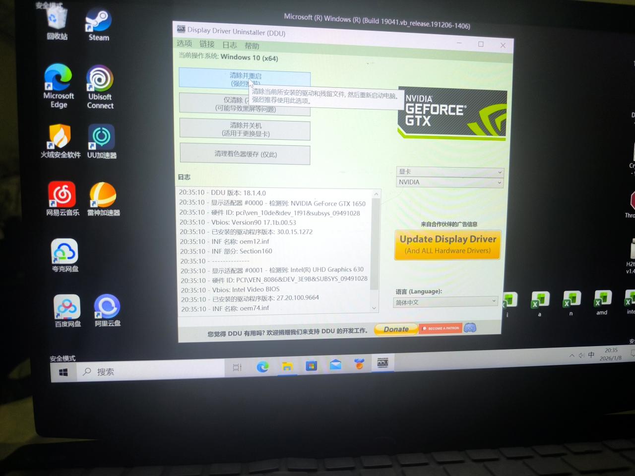 之后就进入了安全模式,找到我们之前解压好的ddu文件夹,运行程序
