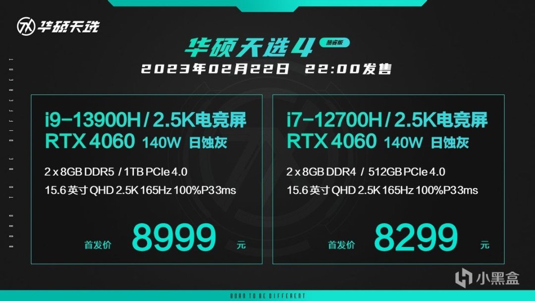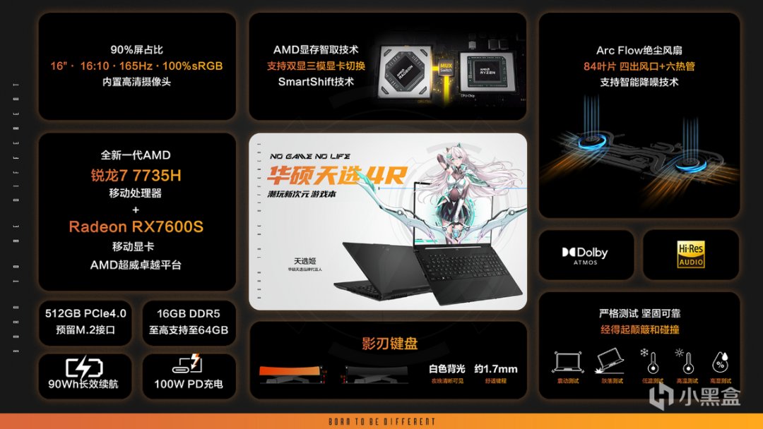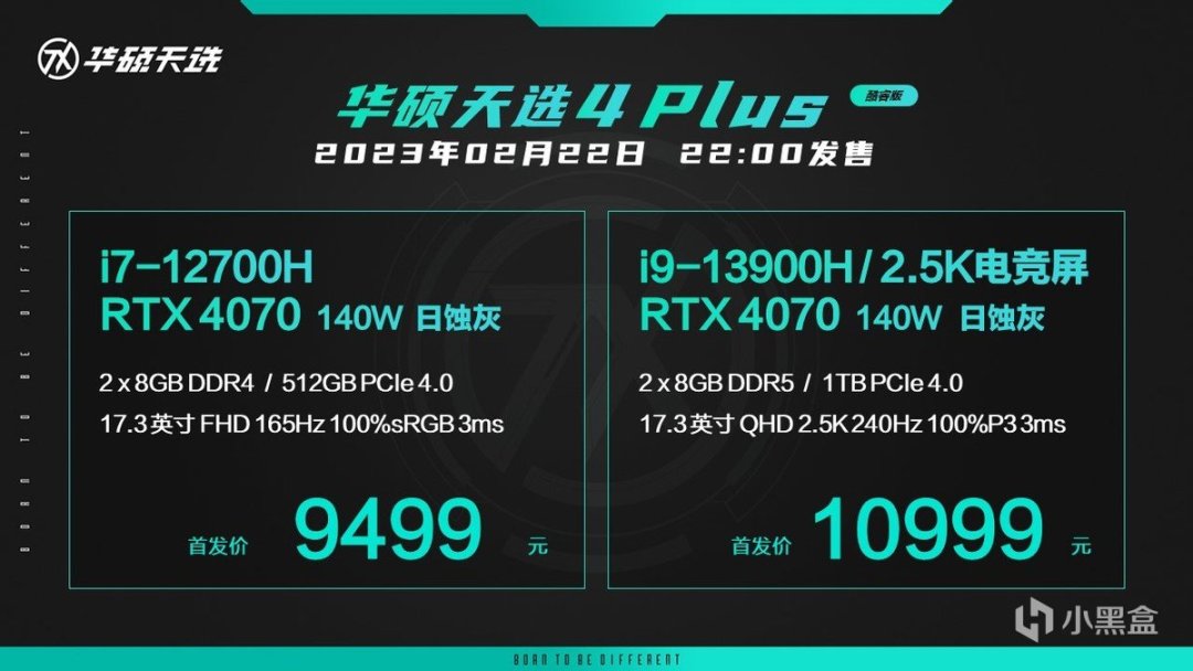 在擁有更萌的天選姬立繪的同時,華碩天選4系列也全面進入13代酷睿+GeForce RTX 40系列Laptop GPU時代,最高可配置GeForce RTX 4070 Laptop GPU以及標壓系列的13代酷睿i9 H處理器,同時還有銳龍版可選,採用魔幻青與日蝕灰配色,機身重約2.1kg,並全系支持100W PD快充。