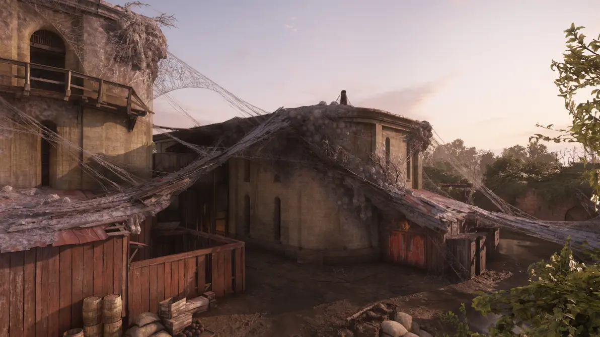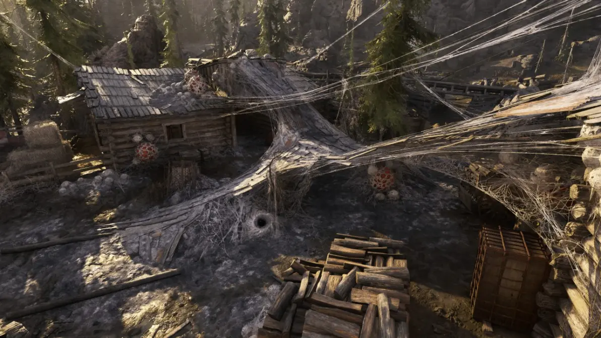 ● 被侵擾的據點內,遍佈毒織魔蛛構築的全新建築,不僅開闢了全新行進路線、形成新的掩體,更爲原有營地增添了更多戰利品。