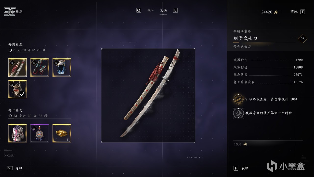 《刺客信條:影》的每週兌換物品來自遊戲內的兌換商店,位於 Animus 菜單的項目標籤頁中,每週四刷新內容,與每日輪換物品區分開。玩家需通過完成周常任務(本體 4 個 + DLC1 個)獲取祕鑰(Keys) 作爲兌換貨幣,也可通過探索世界中的發光白球(異常點)收集少量祕鑰。 以下本週免費兌換的其餘商品: