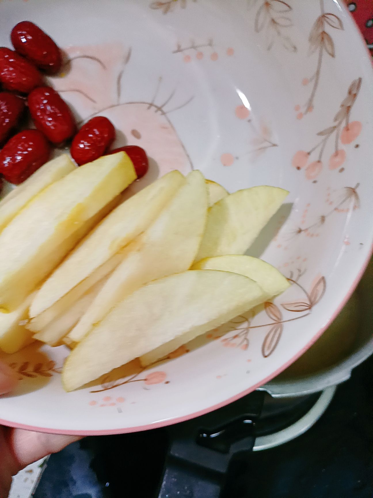 食材:1斤排骨,1个雪梨,2根葱,老姜,红枣