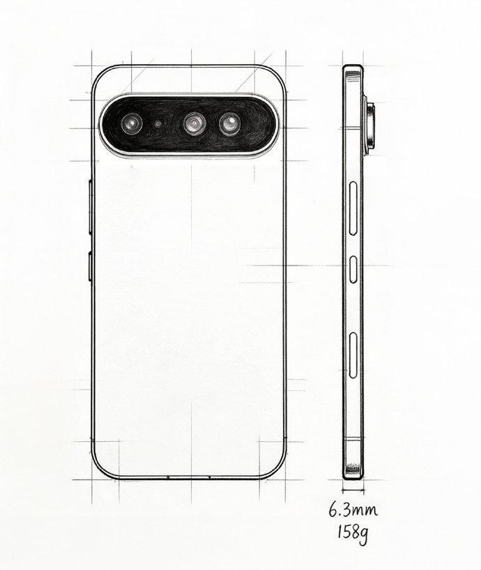 根据曝光线稿及参数信息,该机厚度仅 6.3mm,重量控制在 158g,却搭载了 1/1.3 英寸 Pro 级大底主摄,兼顾轻薄与影像性能。