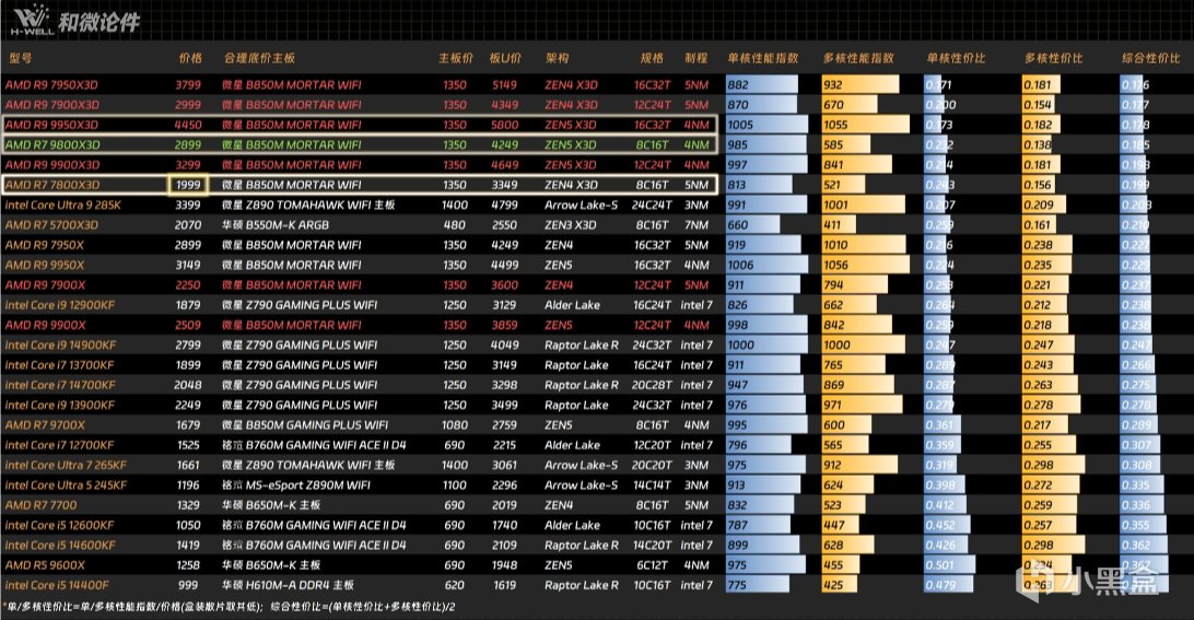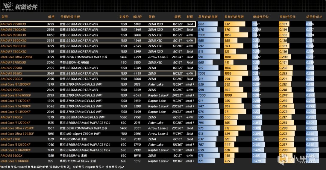 低性价比榜首是7950X3D,3800左右,游戏用户有更便宜、性能更强的9800X3D,生产力用户也有更便宜的9950X,真的没必要入手。