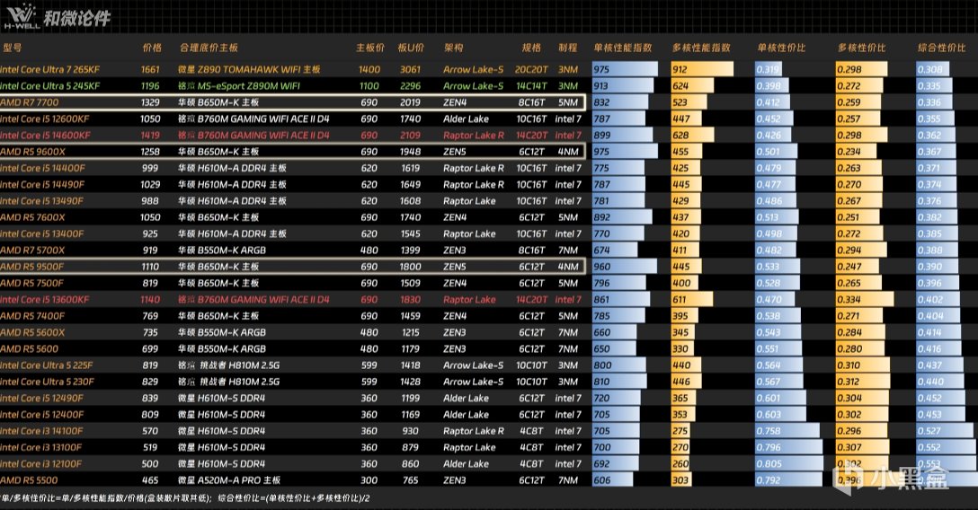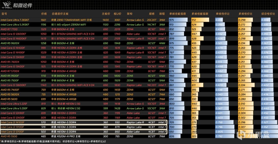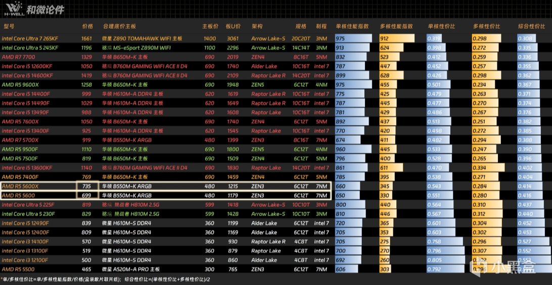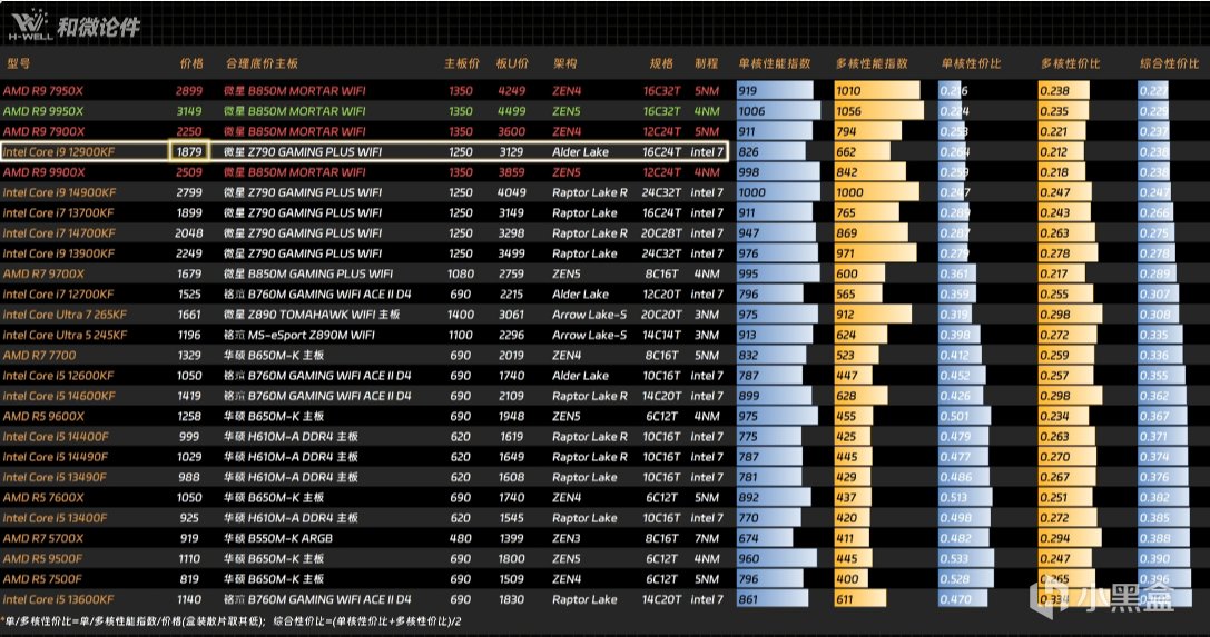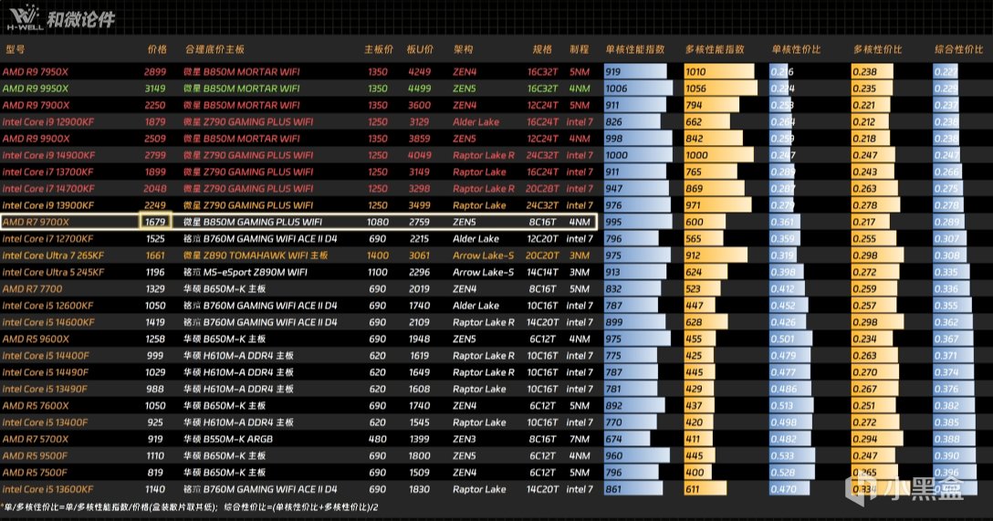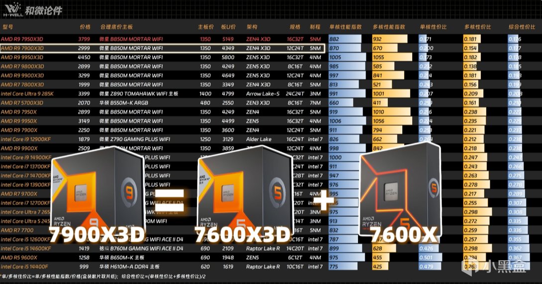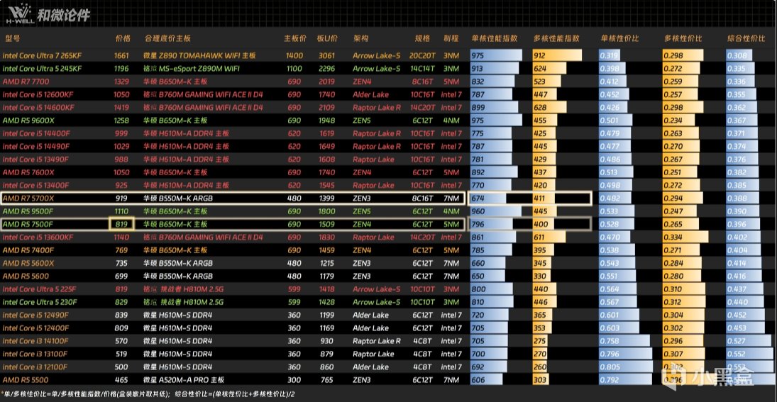 顺便在这里把后面的几个R9不带50一起说一下吧。其中9900X3D情况跟7900X3D都差不多,6核双CCD,定位尴尬,不带X3D的9900X、7900X,则是基本不怎么产出了,价格还在高位,现阶段性价比被265K锤得有点狠。所以不推荐入手。