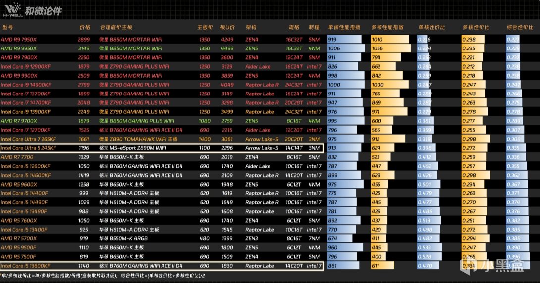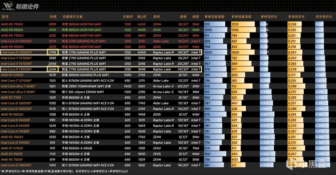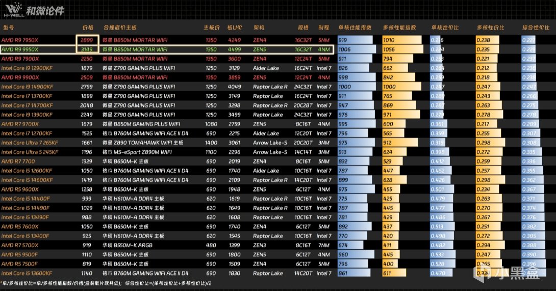 下方则是285K的老对手R9 9950X,性价比还是蛮接近的,推荐生产力用户购买,参考现在7950X的价格,你用到下一代旗舰发布,亏不了多少,换了CPU,主板甚至还能继续兼容,