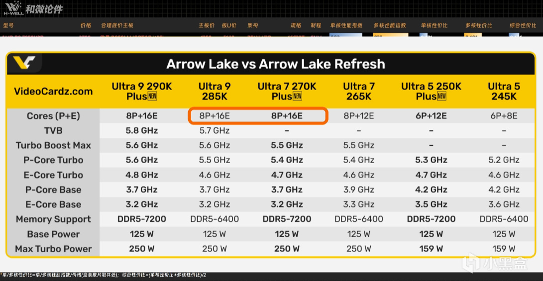 然后是ULTRA 9 285K,跟即将推出的270K PLUS 规格几乎一致,价格预计至少要比285K便宜大几百,说白了就是变相降价,所以285K就千万别碰了。