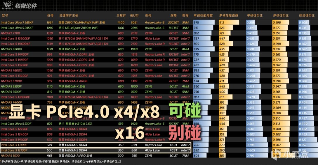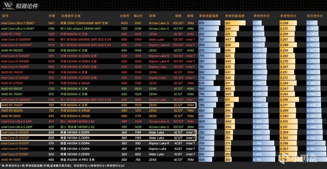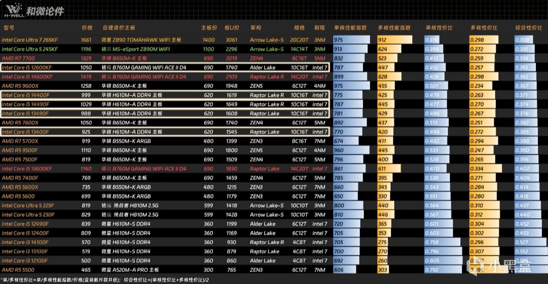 再看12600KF,这颗U跟134、13490F、14400F、14490F、225、230F一起讲,因为支持D4,以及intel主推200S系列的策略变化,13、14代这几颗完全没有任何考虑的必要,225F、230F的价格要低不少,能耗比还不错吗,综合还算可以接受,又由于230F性能更强,价格差不多,所以只有230F可以入。