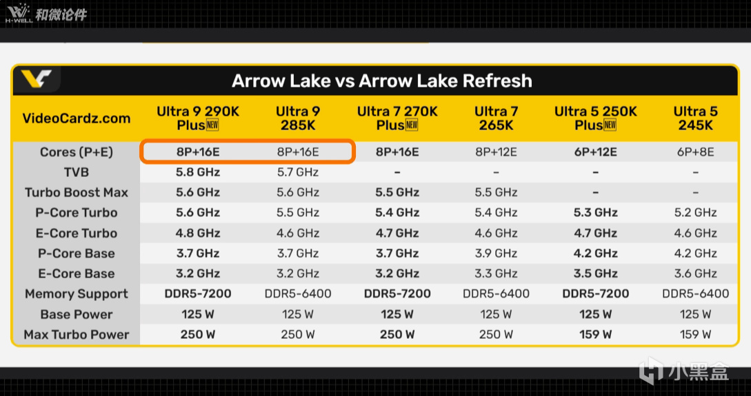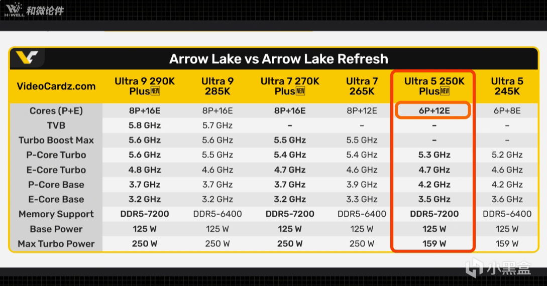 还有250K PLUS,6+12的新规格,比 245K 多 4 个小核,定位有点尴尬。我觉得,如果你想要大核满血,还是直接上 265K 比较稳。